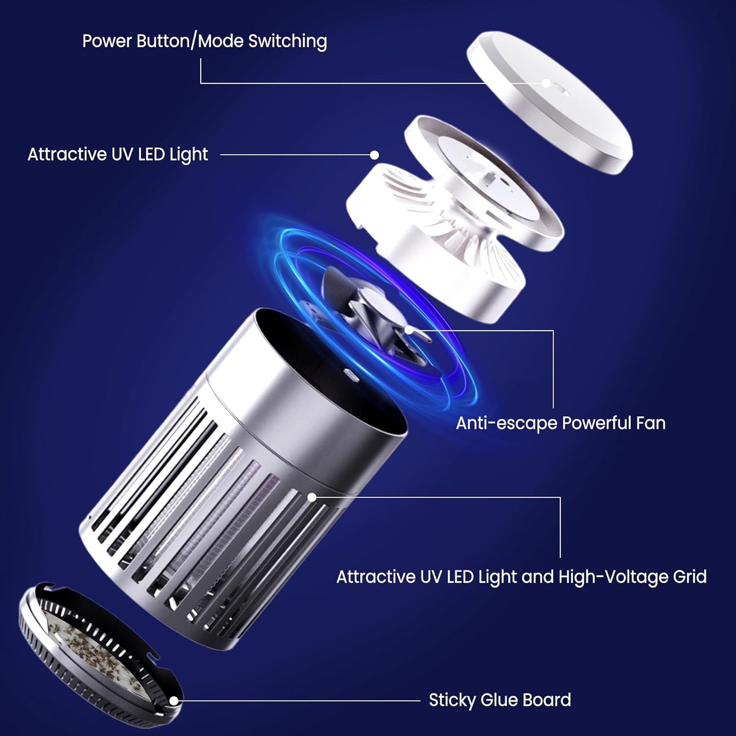 • Newly Upgraded Dual-functionality Bug Zapper - wiping out pesky flying bugs such as mosquitoes, Aedes, gnats, midges, flies, horse flies, fruit flies, moths, wasps, and more. It does the job using both suction and zapping methods.