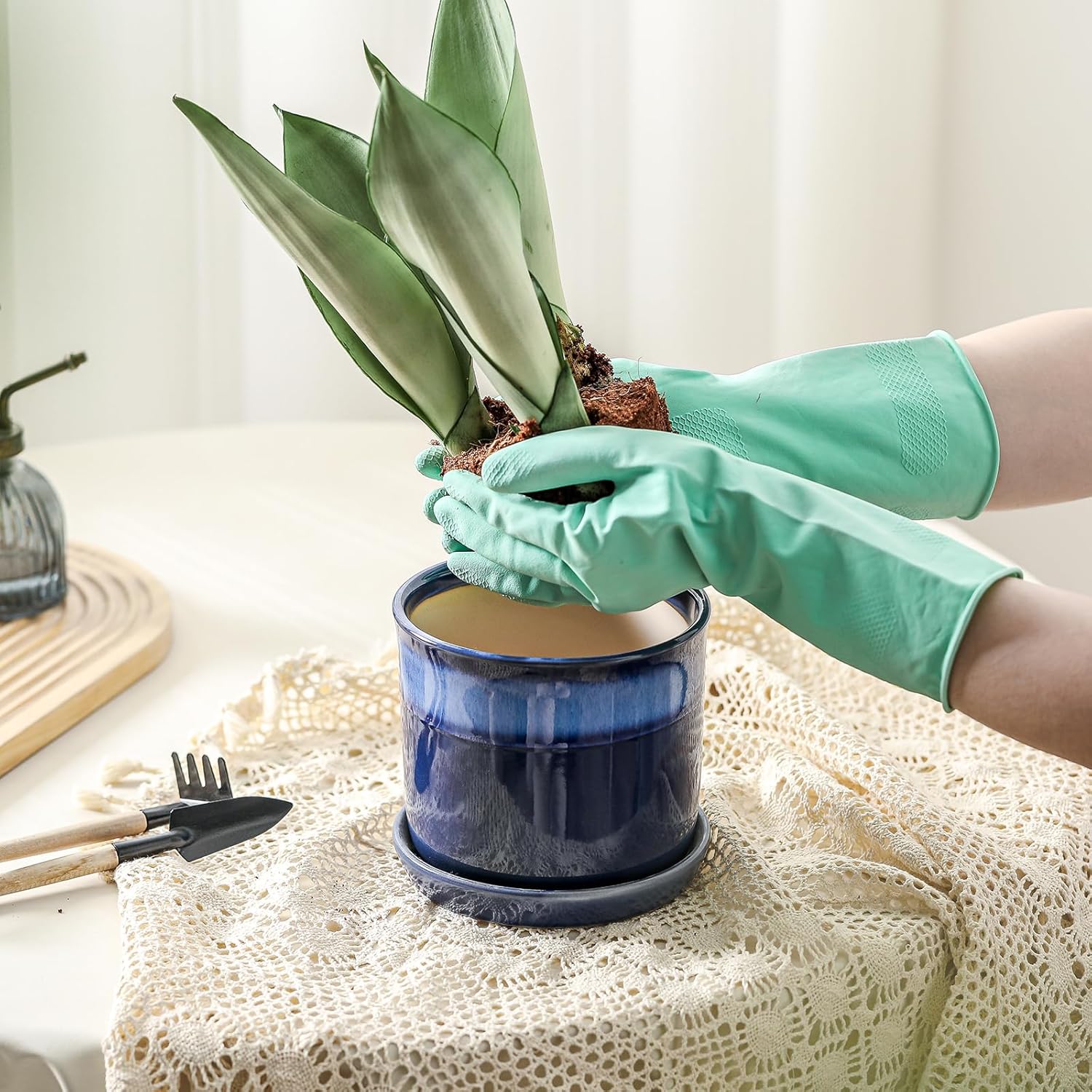 • Each One is Unique: During the high-temperature firing process, the blue glaze on the surface of the flower pots randomly spreads, making the gradient effect of each pot unique. There are no two flower pots that are the same.