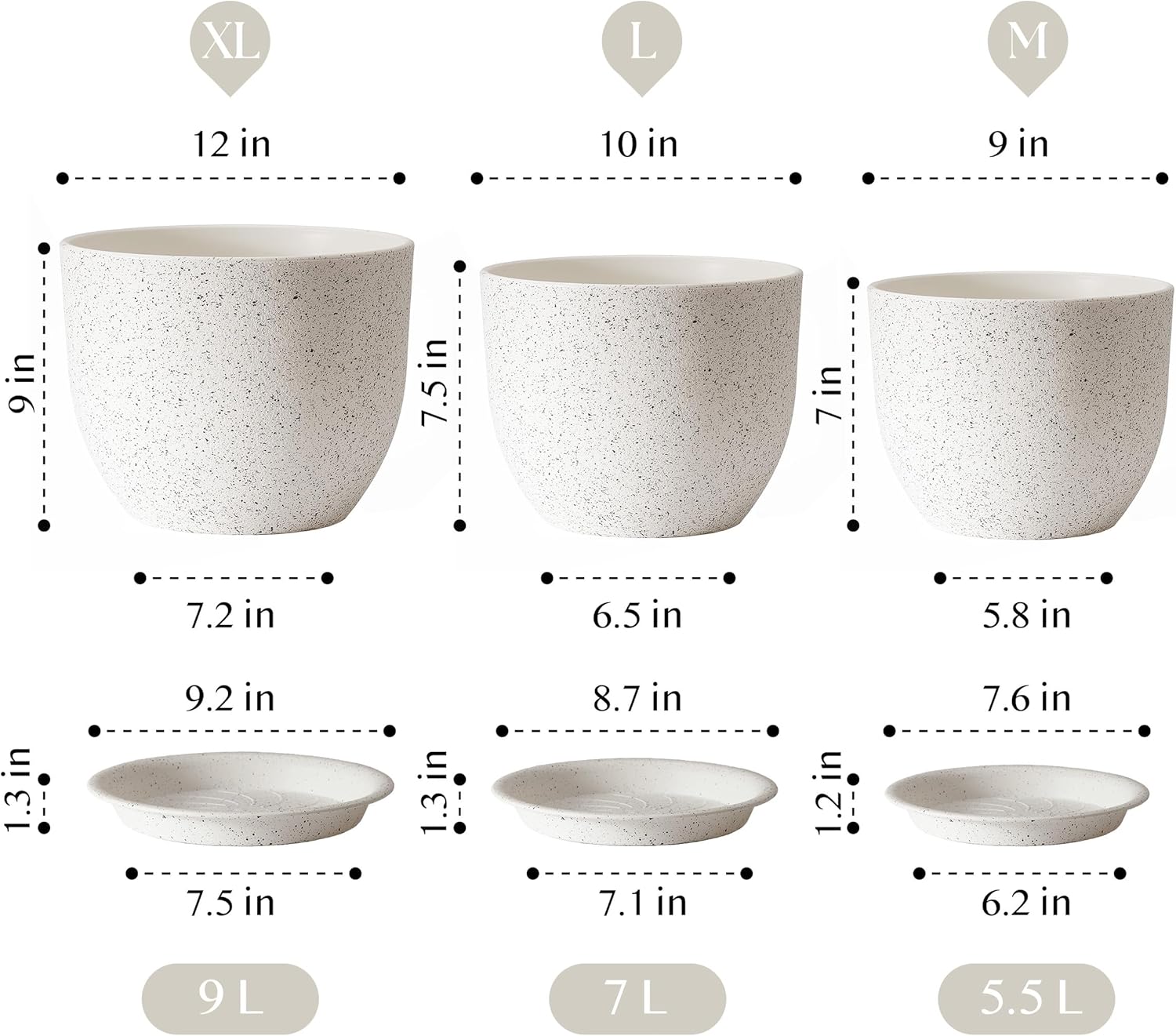 • LIGHTWEIGHT YET DURABLE CONSTRUCTION: Crafted from premium, eco-friendly polypropylene, these pots offer the look of ceramic while being lightweight, impact-resistant, and odor-free. They won’t crack, warp, or fade over time.