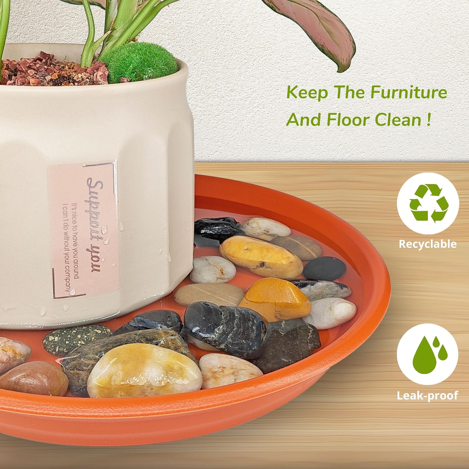 • Optimal Plant Drainage: These plant pot saucers help you catch water from the plant pot drainage hole. help protect wooden floors, carpets, and tabletops from water drainage and soil spillage. You can decorate the plant drip tray with colorful pebbles