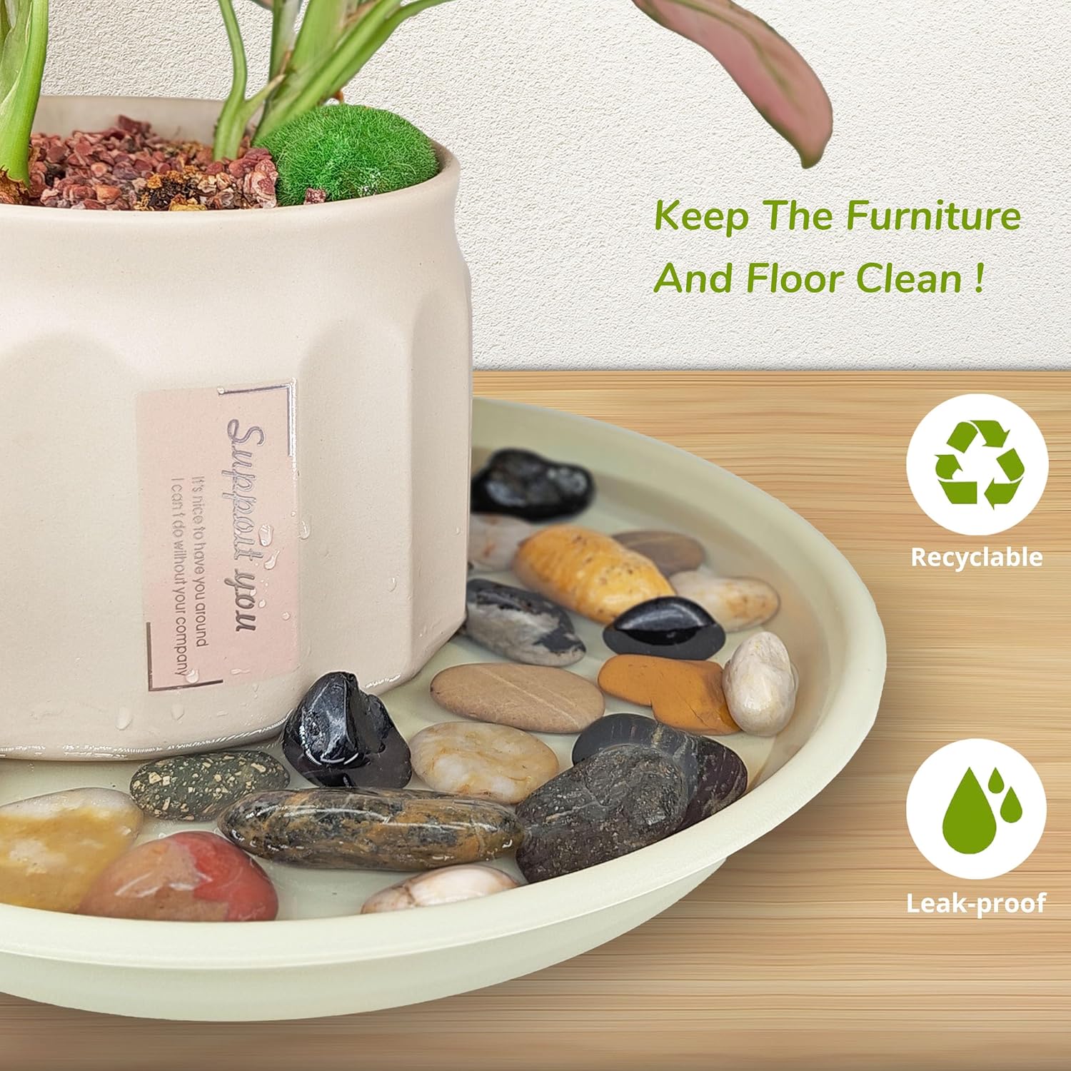 • Optimal Plant Drainage: These plant pot saucers help you catch water from the plant pot drainage hole. help protect wooden floors, carpets, and tabletops from water drainage and soil spillage. You can decorate the plant drip tray with colorful pebbles