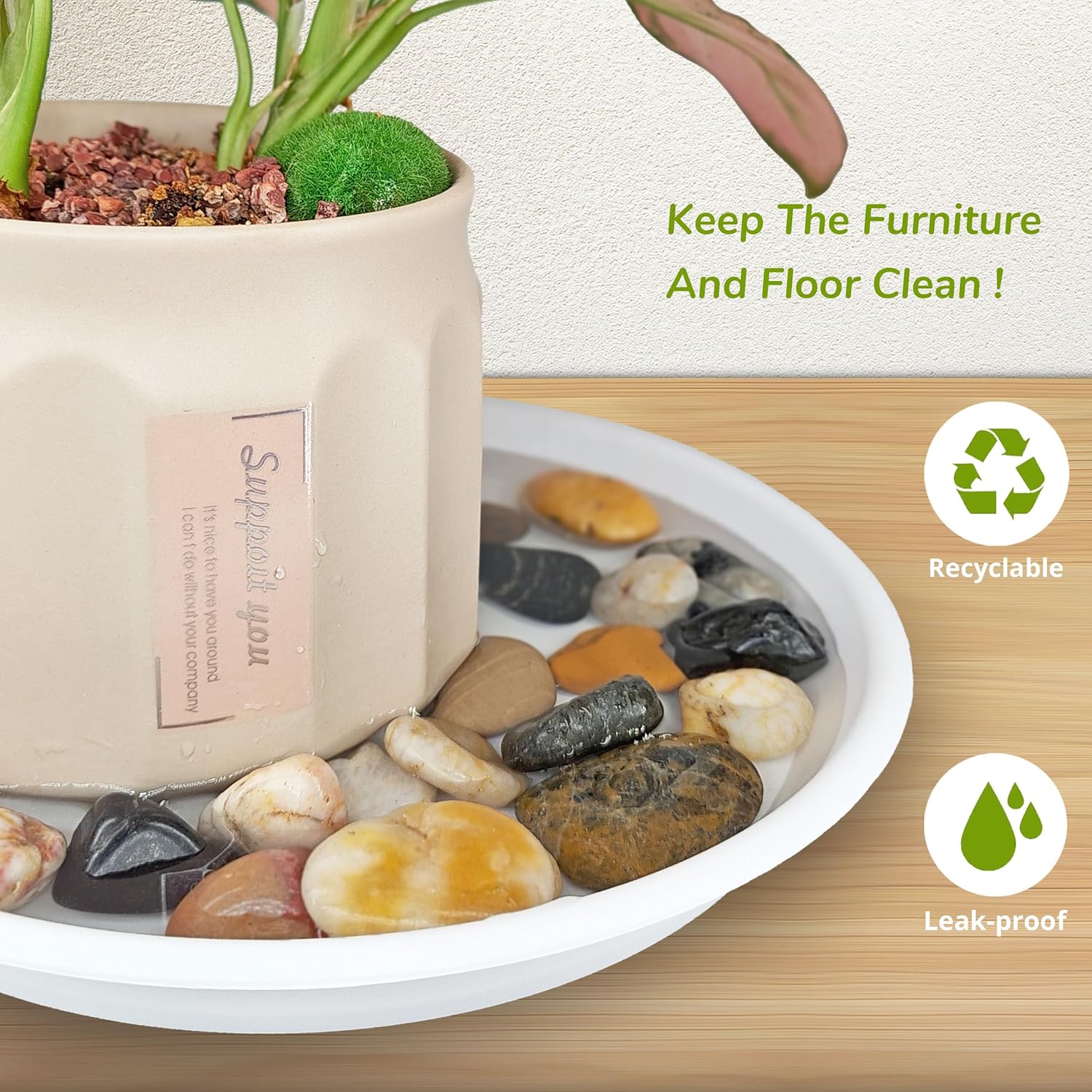 • Optimal Plant Drainage: These plant pot saucers help you catch water from the plant pot drainage hole. help protect wooden floors, carpets, and tabletops from water drainage and soil spillage. You can decorate the plant drip tray with colorful pebbles