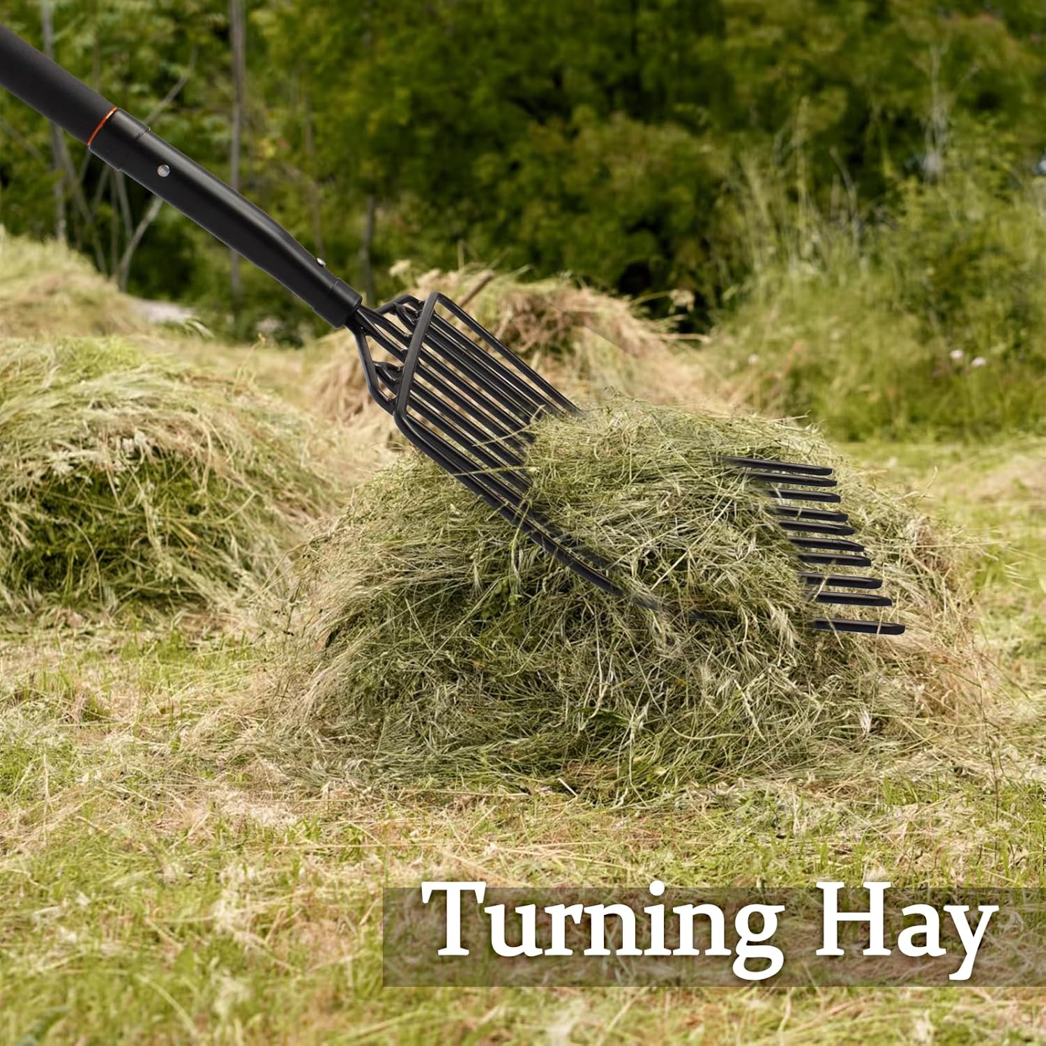 • Essential Gardening Tool: Nohovu pitch fork for gardening stands out among gardening tools with outstanding performance. 10 sharp tines deliver strong penetration, and the wide pitch fork head expands the working range, making it perfect for turning hay, manure, compost, and moving mulch. This bedding fork is indispensable for meeting all your gardening needs.