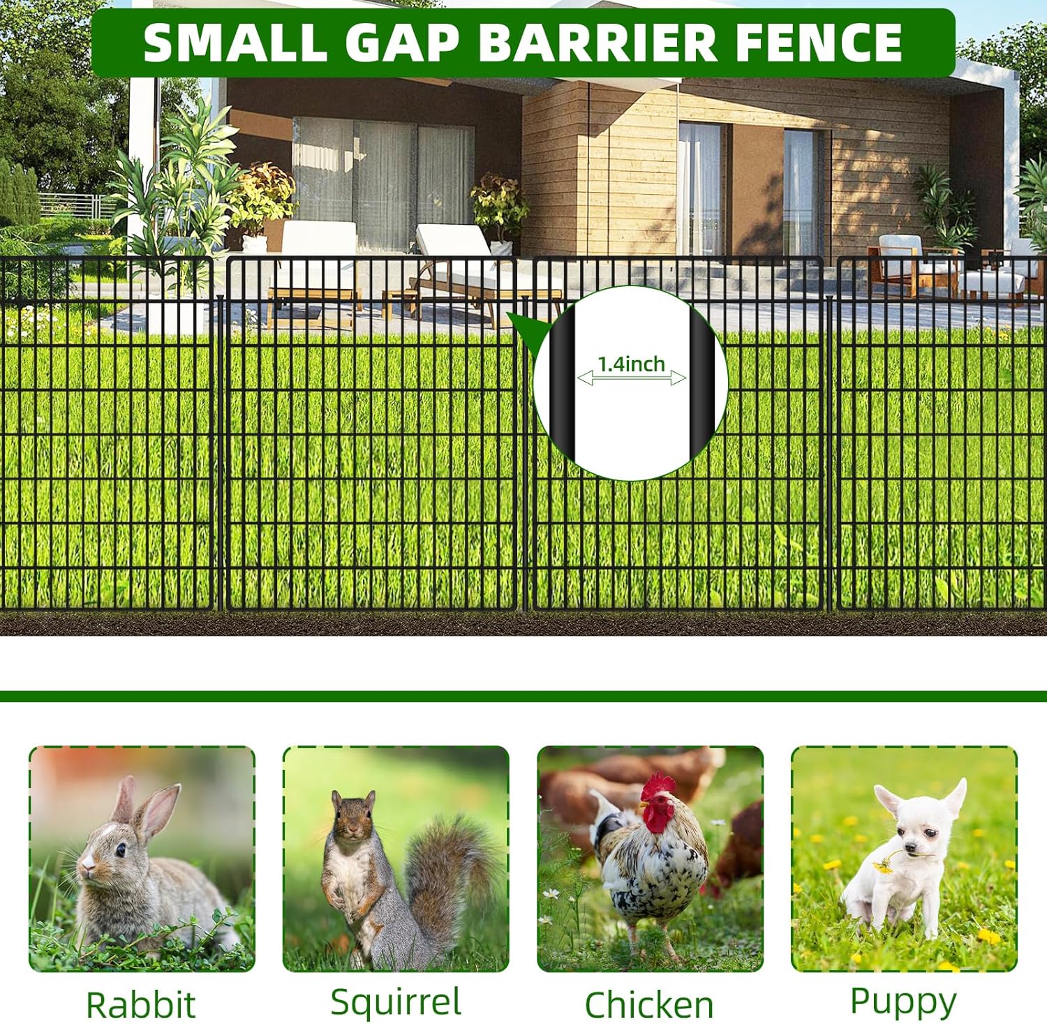 • Multipurpose Decorative Fence --- The metal dog fence panels features a classic black design that perfectly complements any garden or patio style. This type of fencing is ideal for defining garden boundaries, creating safe play areas and confining your pets in a stylish and practical way. It can also be used decoratively to enhance the look of walkways, backyard decorations and garden borders.