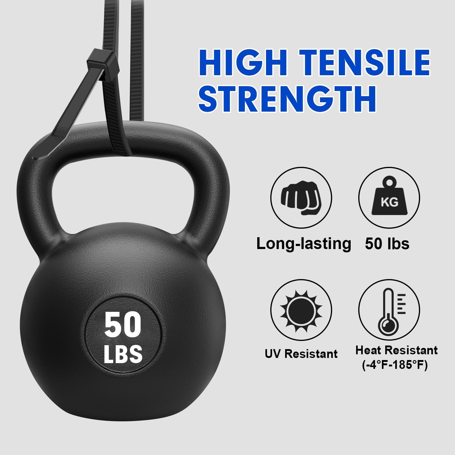 • 50LB TENSILE STRENGTH: The more width, the more tensile strength. The width of our wire ties is 0.19 inch(4.8mm), while industry standard is 0.14 inch(3.6mm), thickness of zip ties 8 inch is 0.05 inch(1.25mm) more tensile strength.