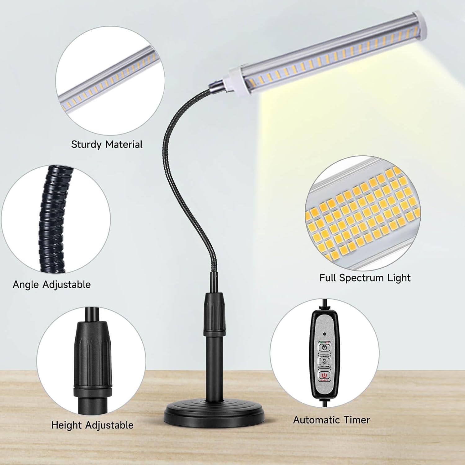 Grow Lights for Indoor Plants 10 inch Lamp Full Spectrum Desk LED Grow Light with Base for Indoor Plant Growing Lamp, Adjustable Gooseneck, Suitable Plants Growth (Without USB Plug) (105 LEDs)