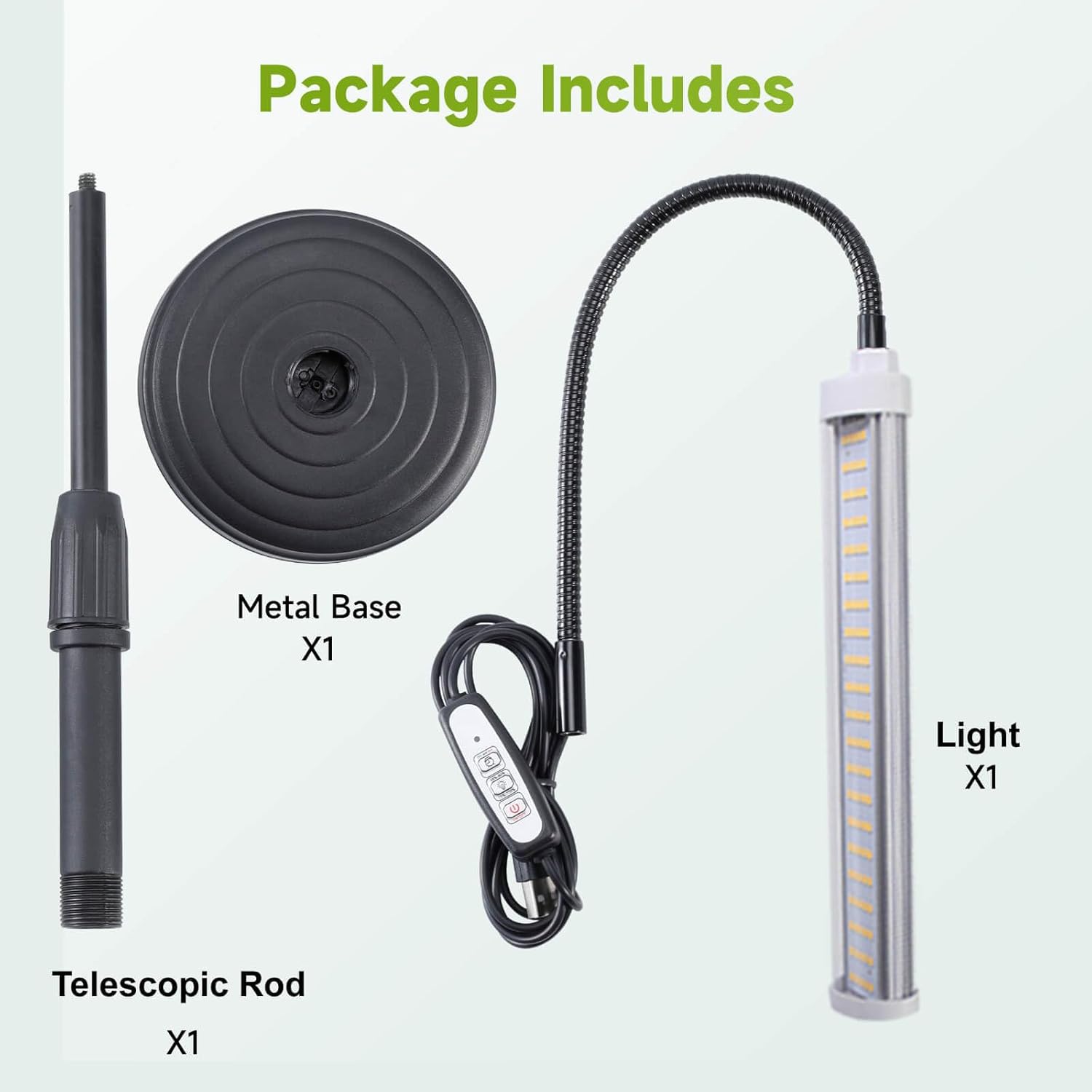 • Easy to Install - With flexible Gooseneck & Solid Base ,Height Adjustable Min 13-Max 18 Inch ,the plant light allows you to place the growth light in any desktop or countertop without fall to provide the best lighting angle for your plants,meet the cover around the plant.Powered by USB or AC Power Plug,
