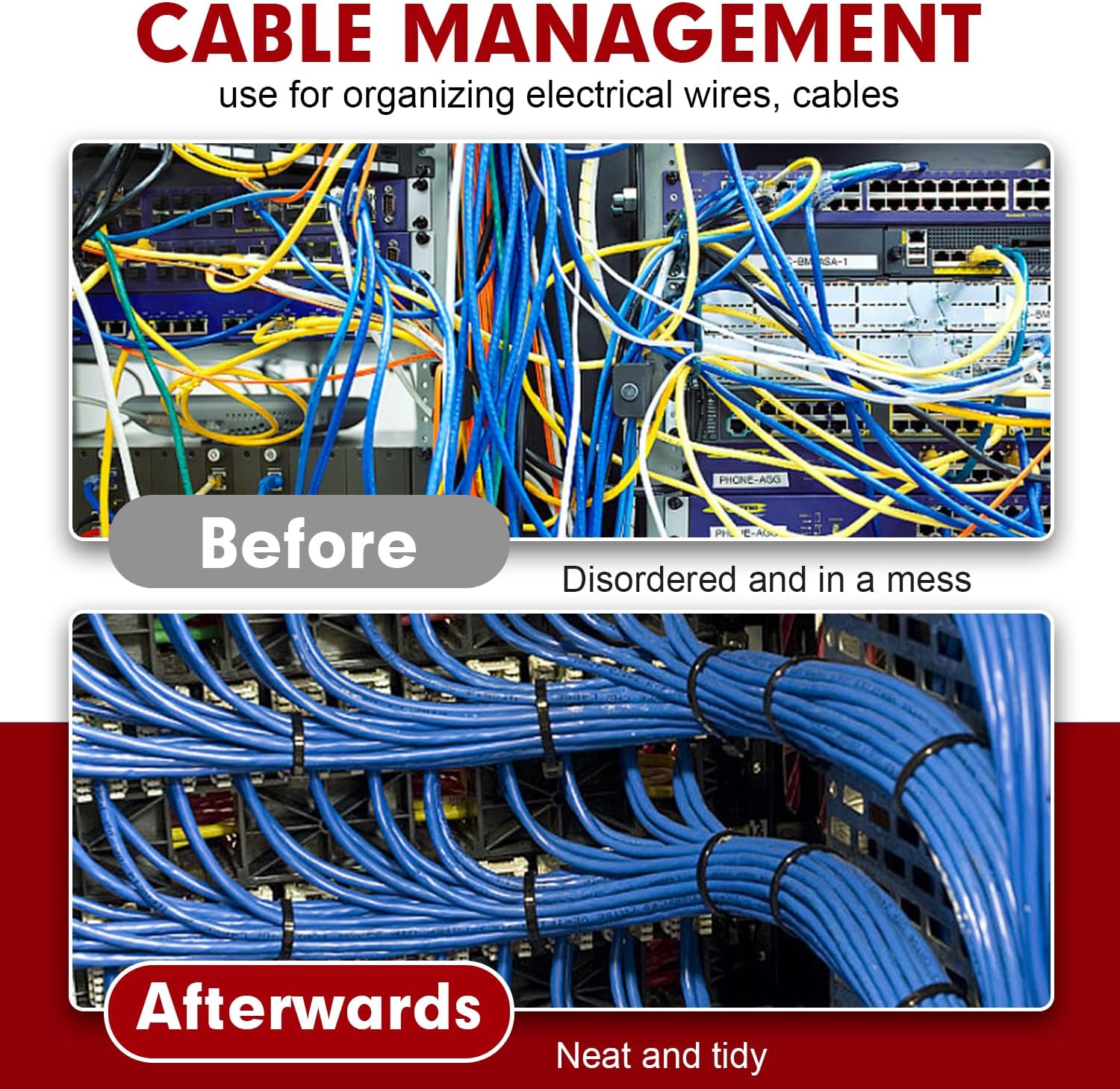 • MULTI-PURPOSE: Cable wire ties with various applications for home, shed, garden, garage, cable cord management. Idea for many indoor & outdoor projects like hanging lights and banners, securing bike/ car accessories, ideal for keeping well organized and tidy in place