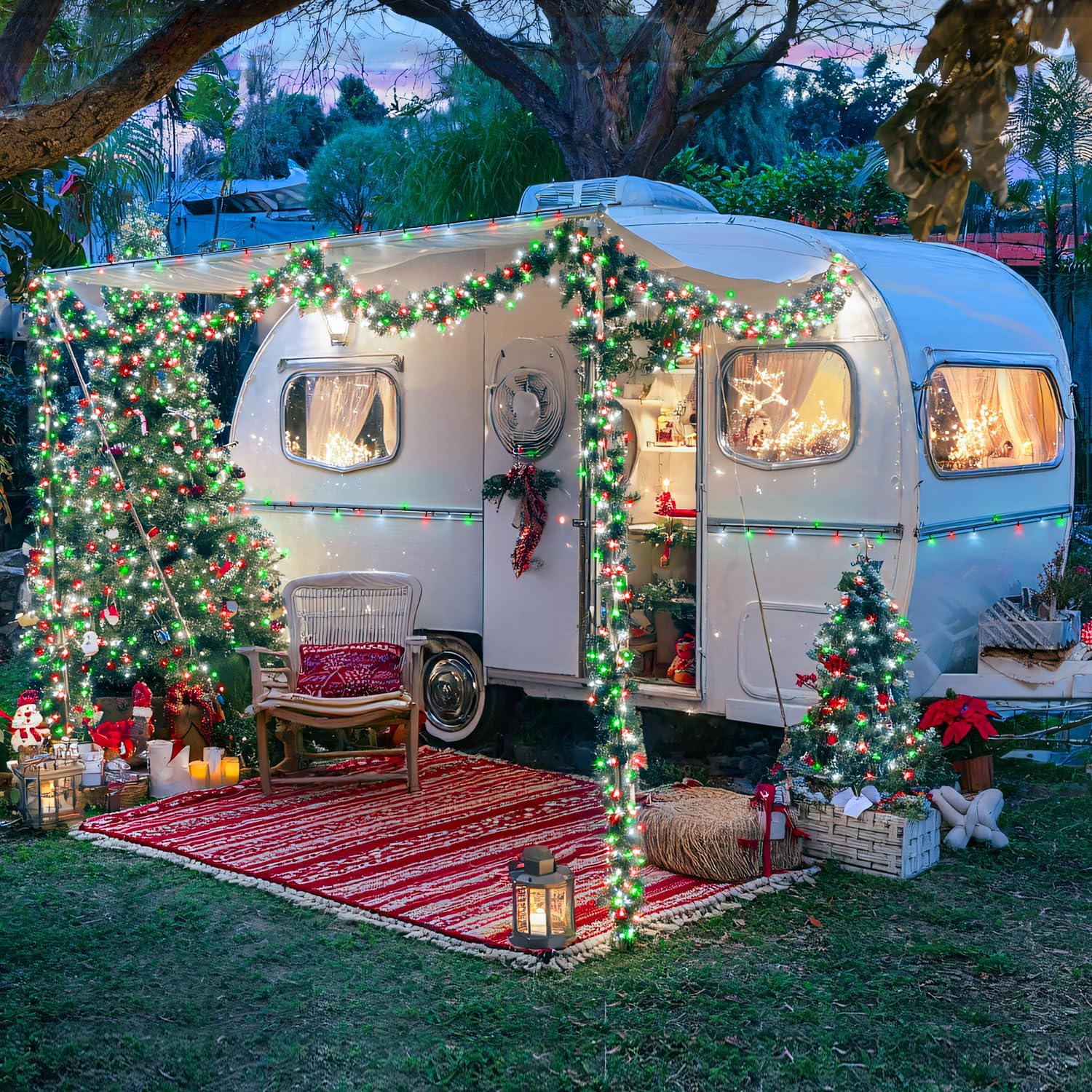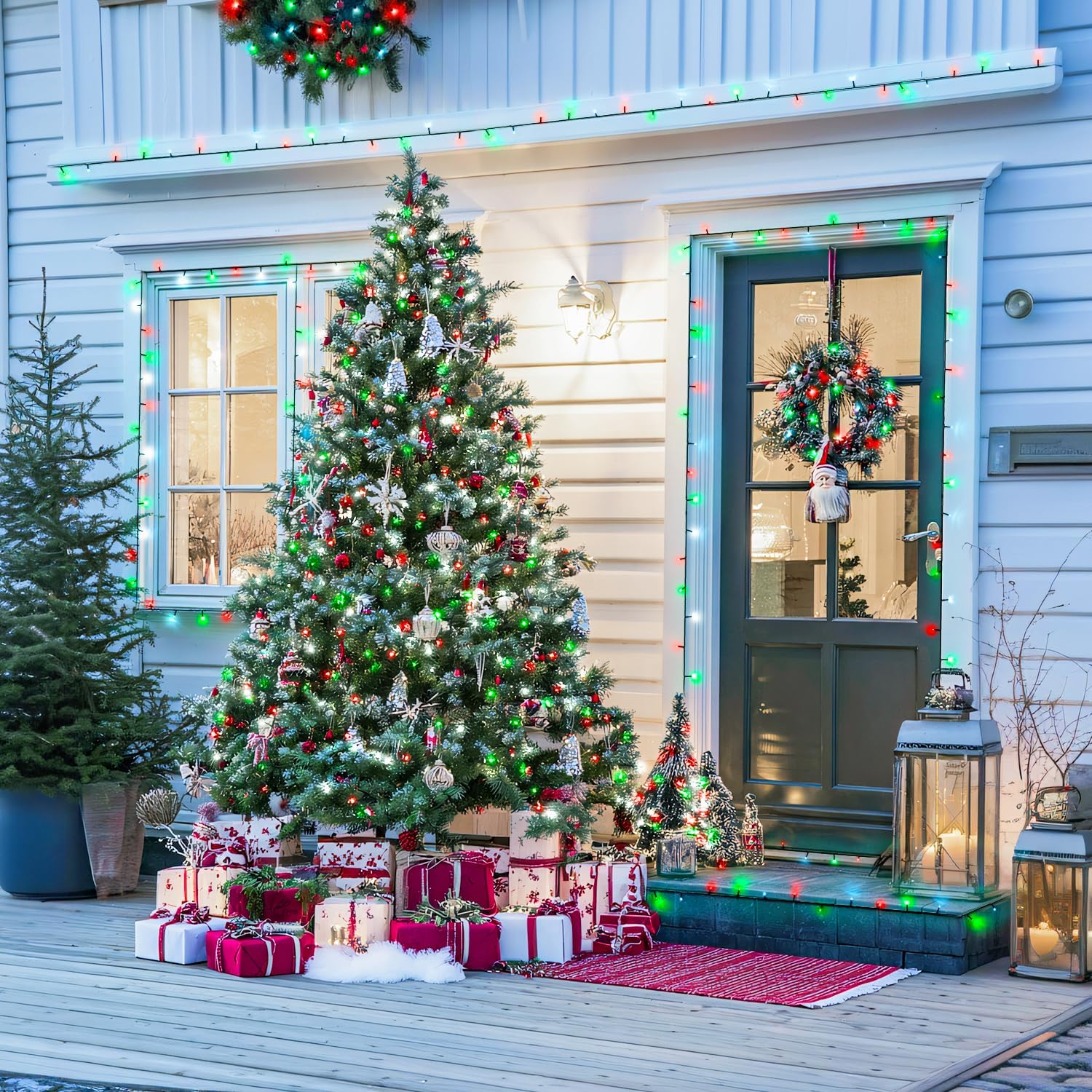 • 【8 Modes & Memory Function】Our red white and green christmas lights have 8 lighting modes(combination, in a wave, sequential, slo glo, chasing/flash, slow fade, twinkle/flash, and steady on). A built-in memory chip saves your last mode setting without having to reset the mode every day.