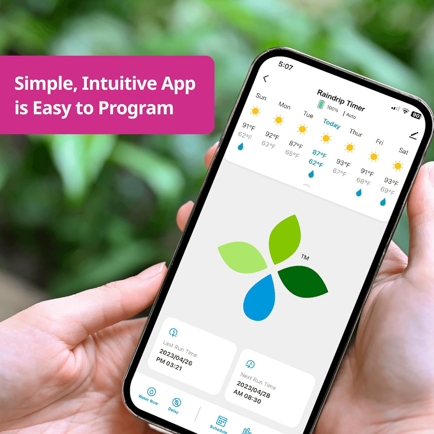 • AUTOMATE YOUR WATERING: Control from anywhere with customizable schedules and weather-based watering capabilities; stays connected to your smartphone even if Wi-Fi is interrupted; manual watering options for ultimate control