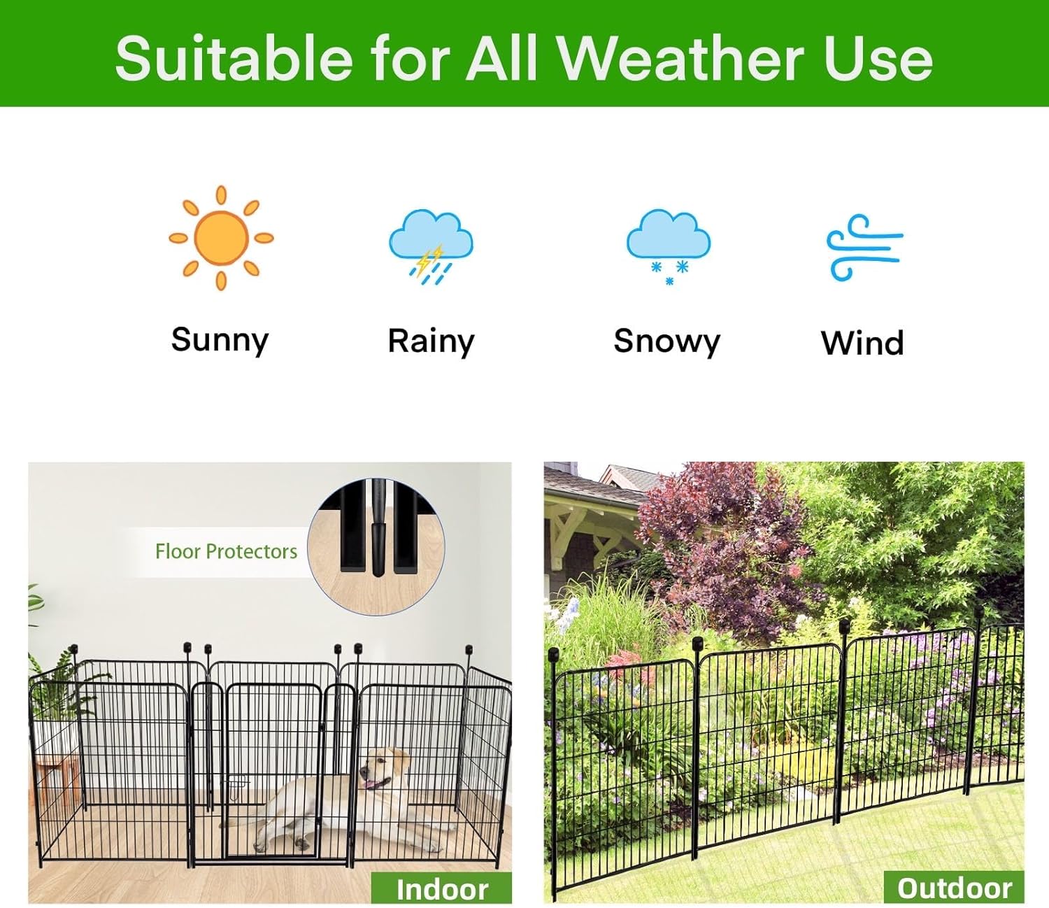 • Outdoor or Indoor: Our Spiked Connecting Poles are Designed to be Longer so that You Can Insert the Poles into the Soil Deeper, Ensuring A More Stable Installation,The Fence Can be Used as An Indoor and Outdoor Pet Fence