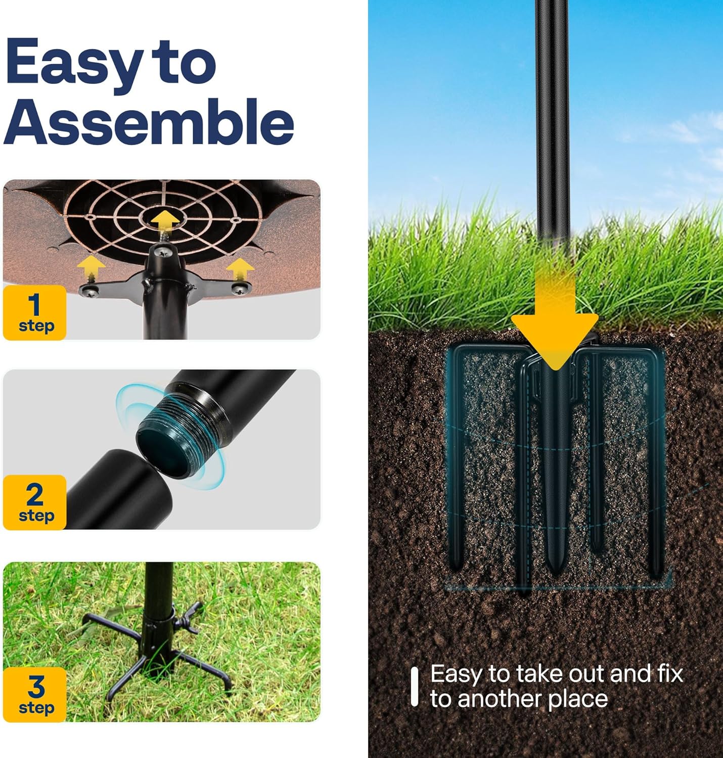 • EASY TO USE: The clear manual makes assembly easy and you simply tighten the support bar to the bird bath base using the wingnut; Place the solar fountain in water—sunlight powers automatic spraying; To change patterns, attach nozzle, connectors, and fountain in sequence; Four fixing rods anchor the pump, preventing float and boosting spray