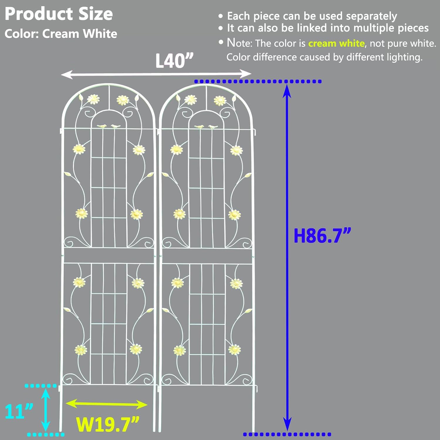 2 Pack Metal Garden Trellis 86.7" H Garden Fence Rustproof Trellis Cream White for Climbing Plants Support Roses Flower Cucumber Outdoor Lawn, Cream White