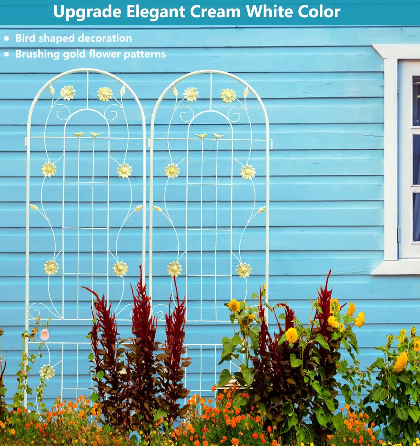 • Plants Supporting Trellis: This Cream White metal garden trellis is perfect for supporting all kinds of flowering trellis plants, wall-climbing vines. It allows them to grow naturally up towards the top.