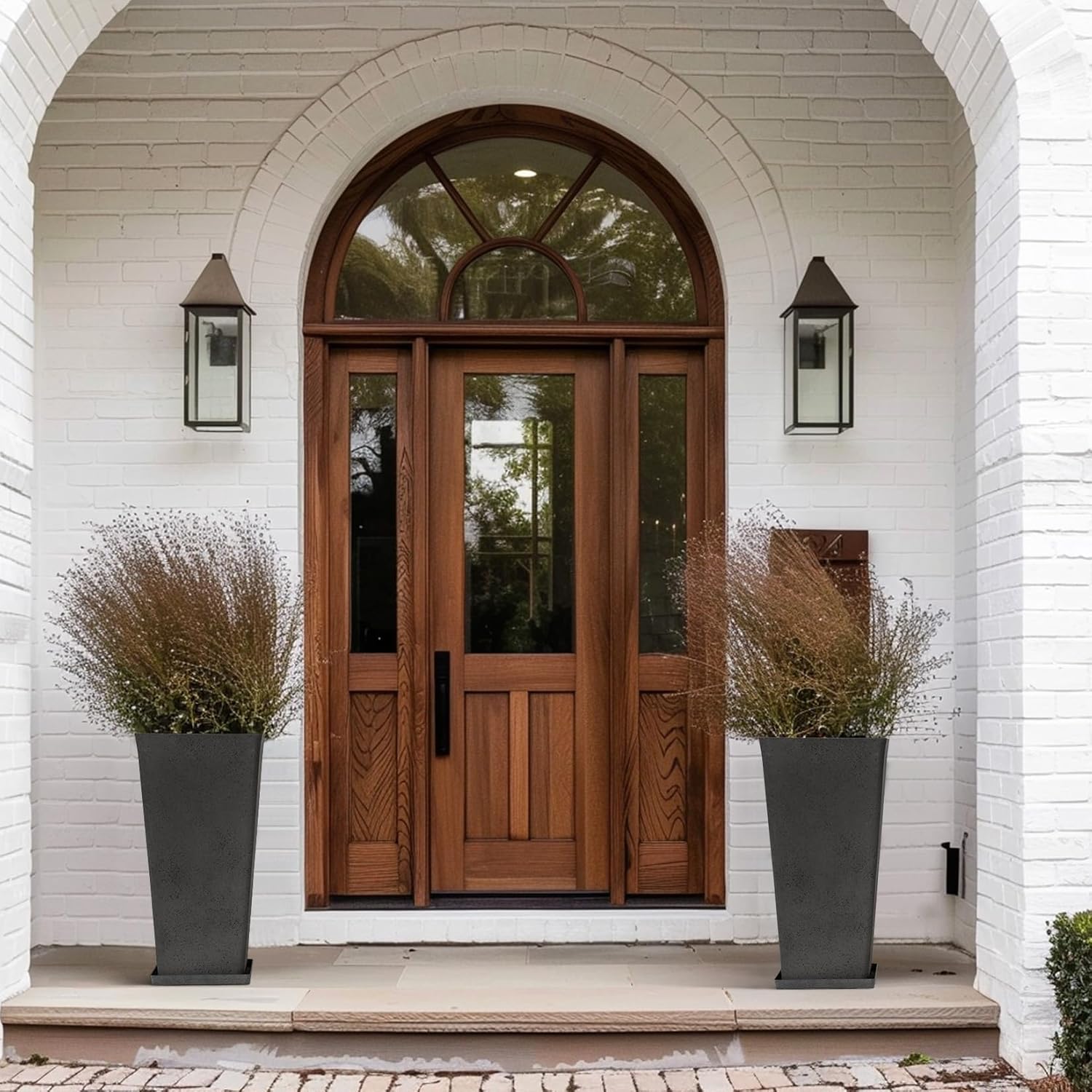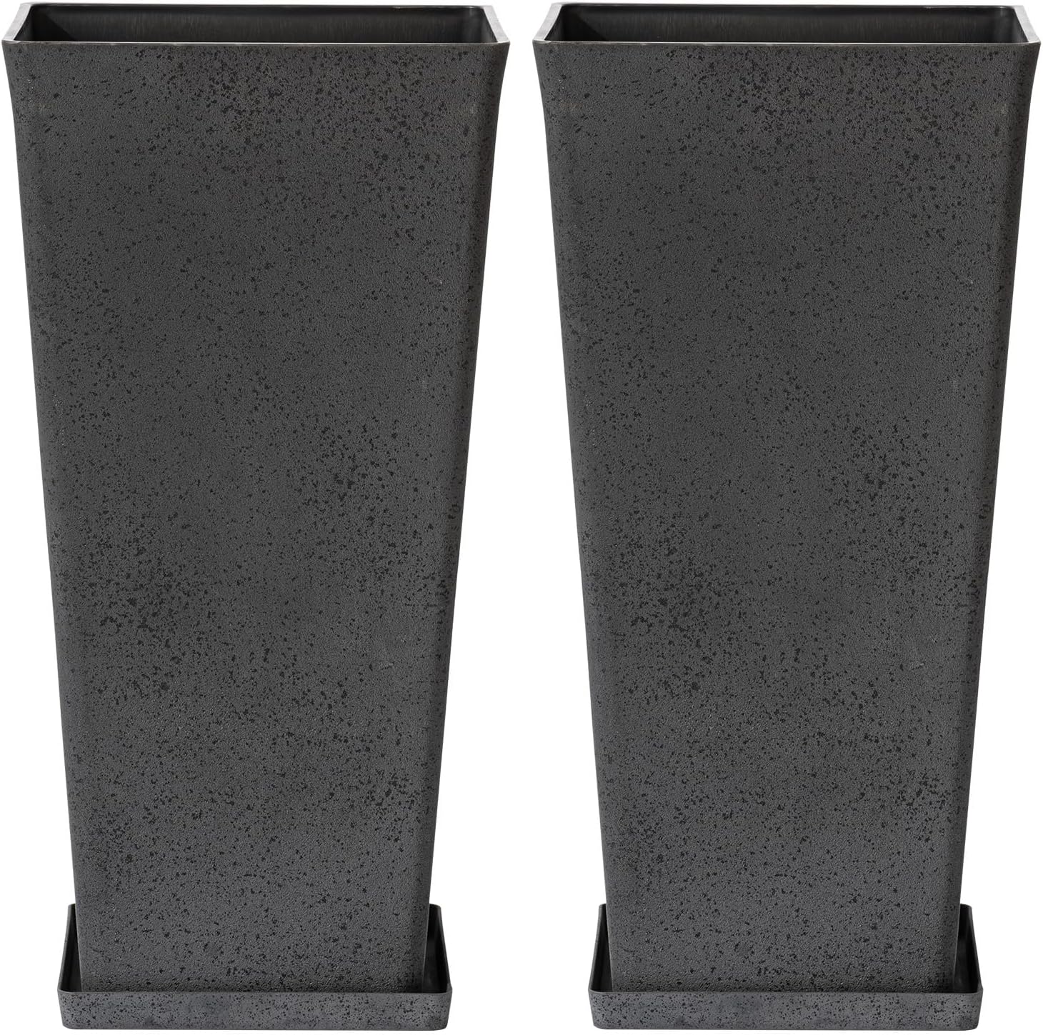• ENORMOUS TALL PLANTER - This spacious set of 2 outdoor planters gives you extra creative freedom for your different gardening needs. Your ferns, pothos, ivy, fiddle, or ficus trees will thrive in these big planters. Place them on the entrance, on your patio, porch, garden, or yard to add a sense of nature to your home. Size:15”(Upper D) x 30”(H). Soil Capacity: 19 gallons per planter. (Plants are not included)