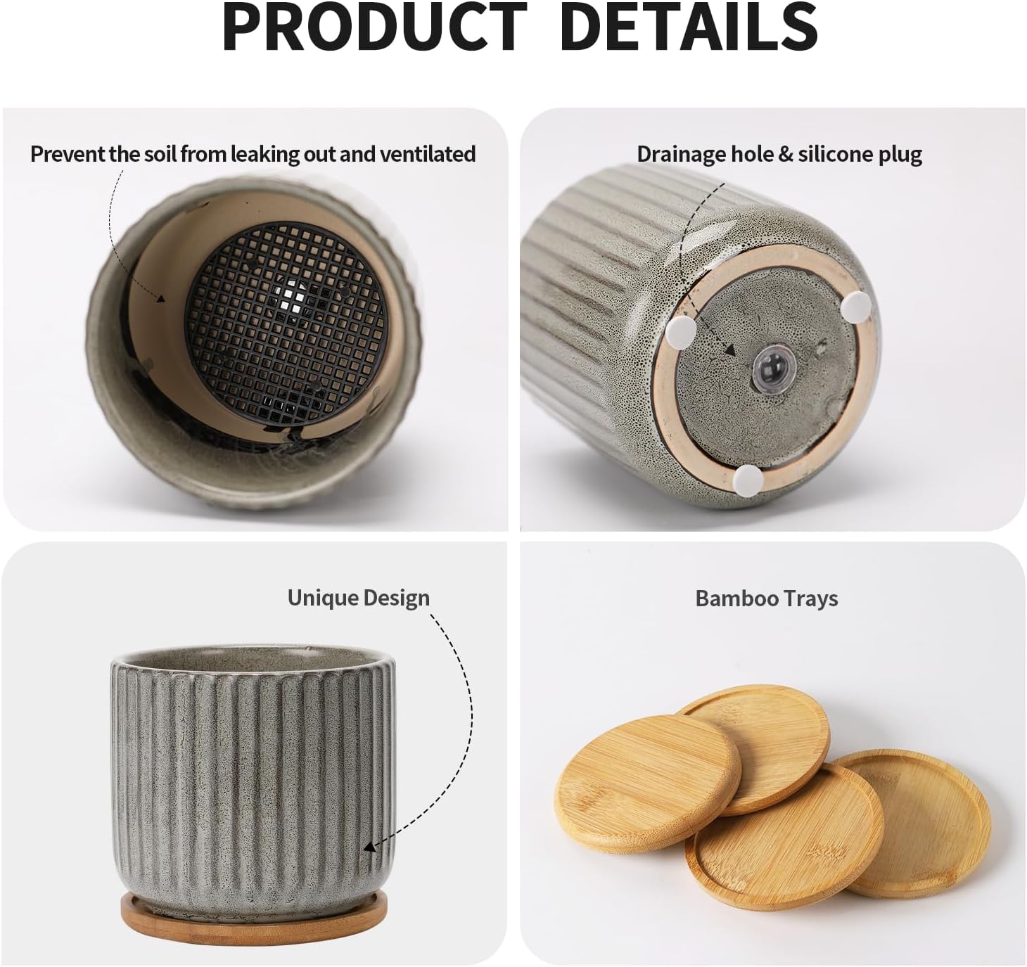 TAMAYKIM 5.25 Inch Ceramic Plant Pots with Drainage Holes and Saucers, Modern Flower Pots with Trays for Indoor Planters, Snake Plant, Succulent, Cactus and Herbs, Set of 4