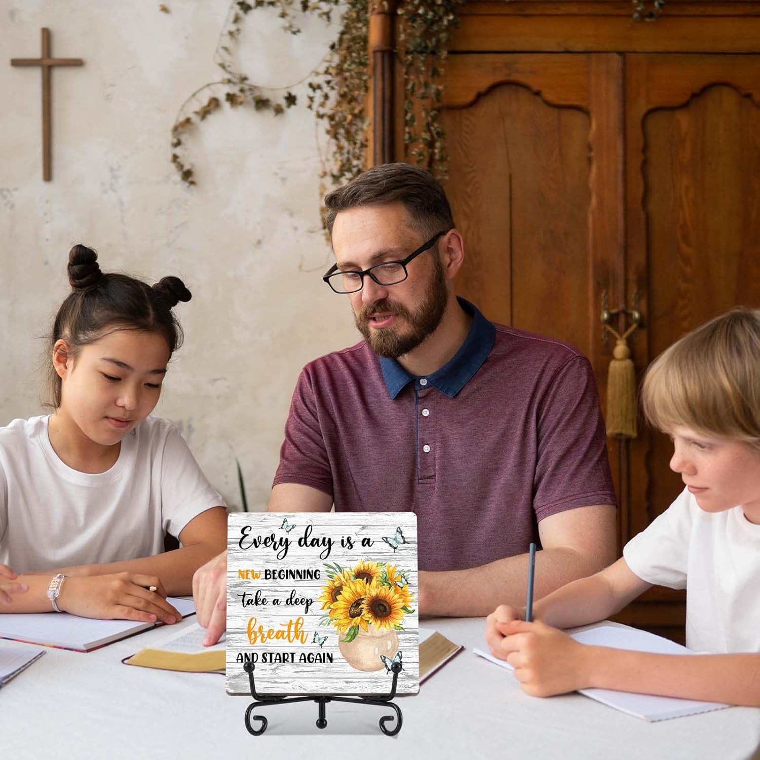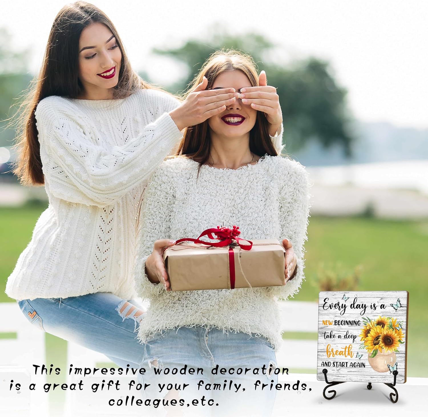 Motivational Gifts Wood Decor Sign, Inspirational Sunflower Wooden Rustic Farmhouse Decor with Stand for Home Desk Tabletop Shelf Decorations (A12)