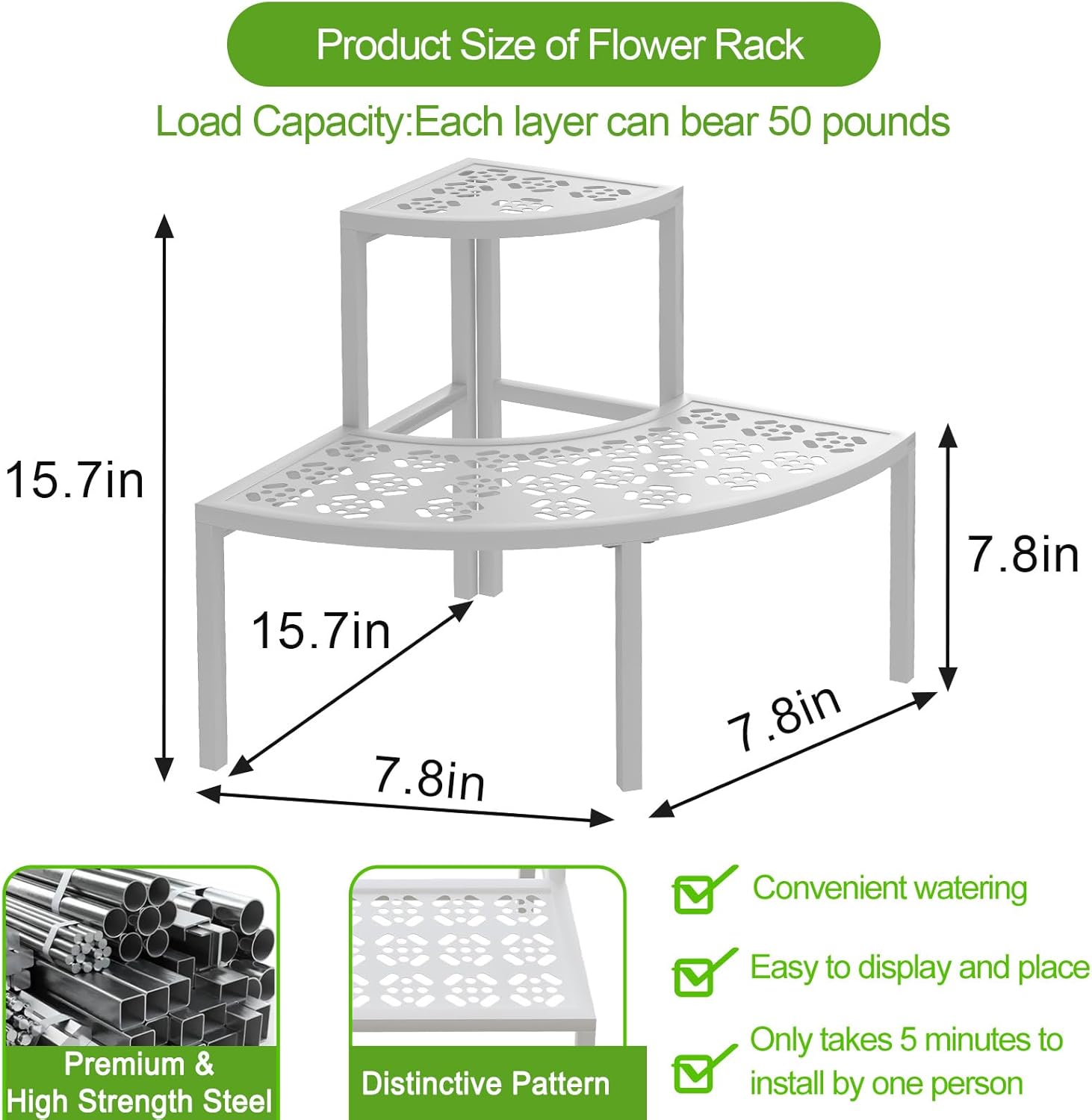 aboxoo 2 Tier Plant Stand Flower Pot Rack for Patio,Heavy Duty Metal Stair-Step Style Corner Shelf Planters, Quarter Round Display Holder for Indoor Outdoor Use(White, Semicircle)