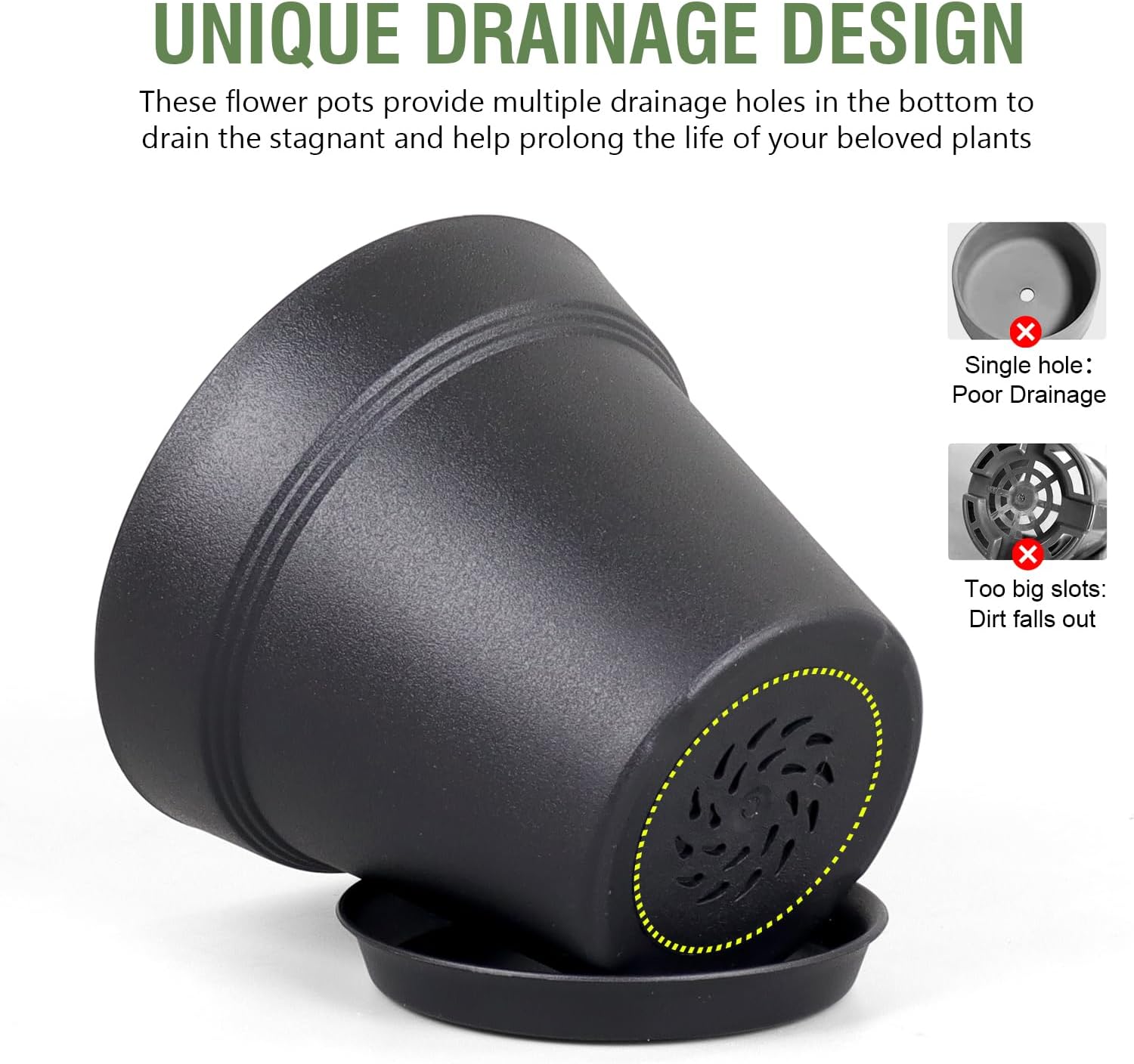 • 【Drainage Holes and Trays】Each plant pot features well-designed drainage holes at the bottom to ensure proper water flow. Additionally, saucers catch excess water, keeping your growing area clean and tidy while also ensuring that your plants remain hydrated without becoming waterlogged.