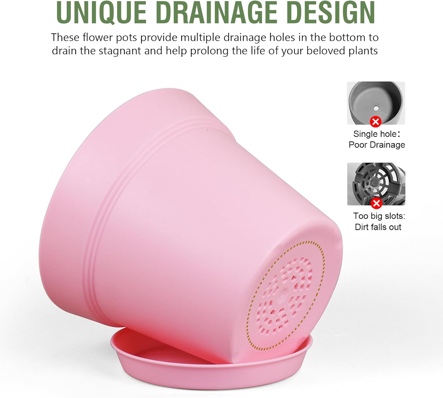 • 【Drainage Holes and Trays】Each plant pot features well-designed drainage holes at the bottom to ensure proper water flow. Additionally, saucers catch excess water, keeping your growing area clean and tidy while also ensuring that your plants remain hydrated without becoming waterlogged.