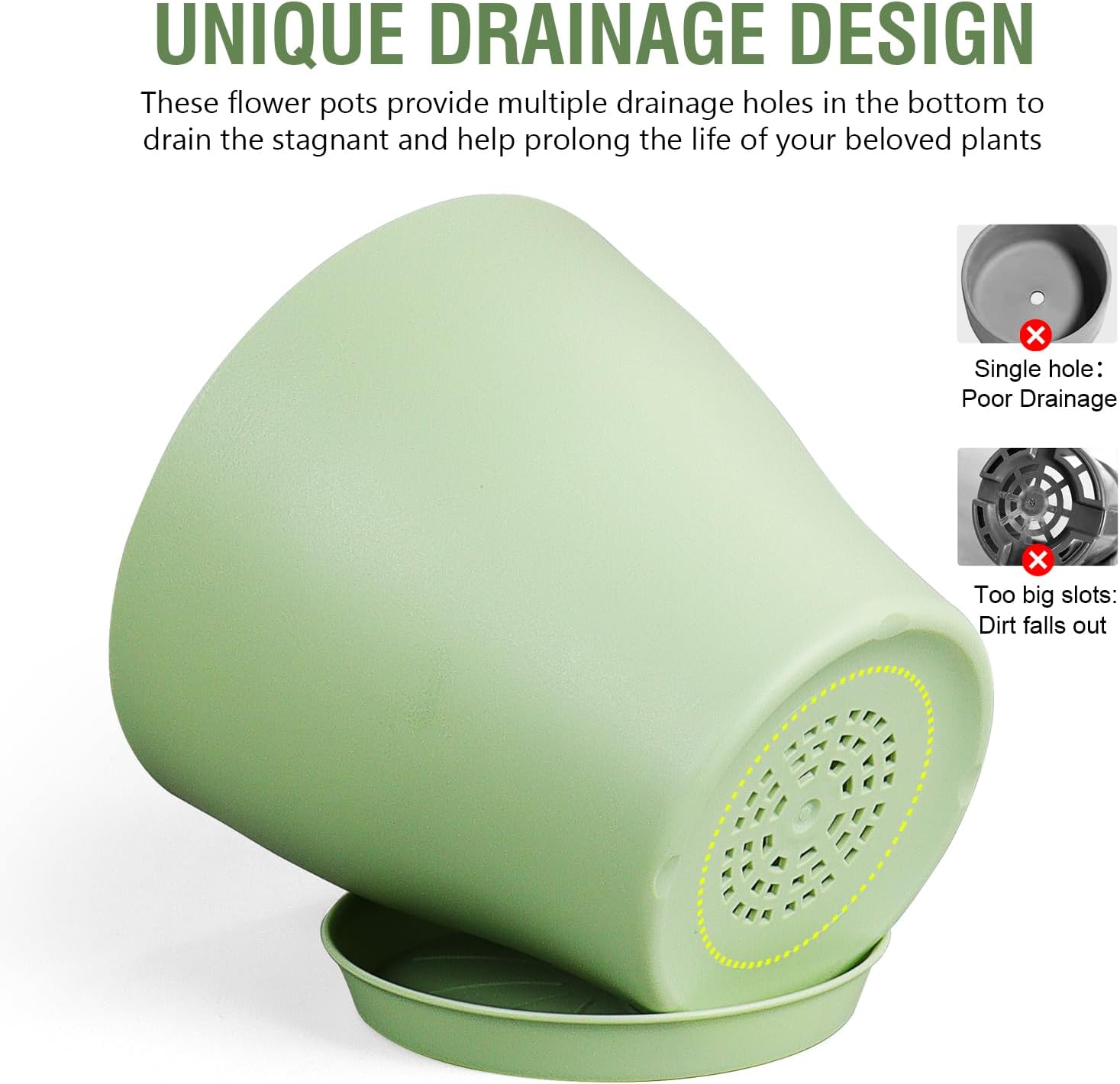 • 【Drainage Holes and Trays】Each plant pot features well-designed drainage holes at the bottom to ensure proper water flow. Additionally, saucers catch excess water, keeping your growing area clean and tidy while also ensuring that your plants remain hydrated without becoming waterlogged.
