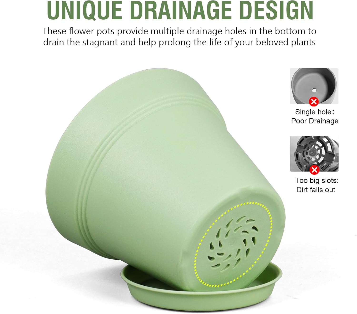 • 【Drainage Holes and Trays】Each plant pot features well-designed drainage holes at the bottom to ensure proper water flow. Additionally, saucers catch excess water, keeping your growing area clean and tidy while also ensuring that your plants remain hydrated without becoming waterlogged.