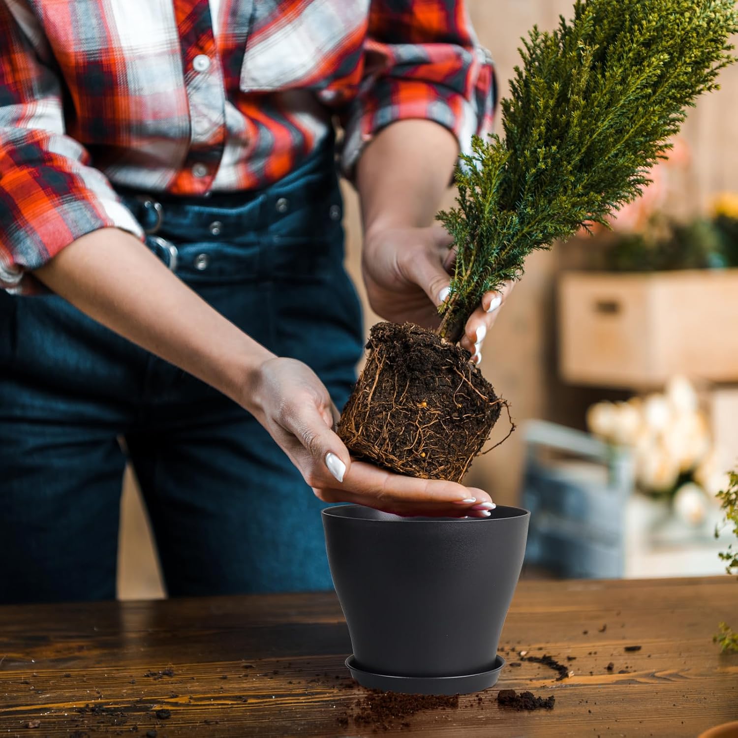 • 【Lightweight and Durable】Crafted from high-quality plastic, these flower pots are both lightweight and incredibly durable. They are designed to withstand everyday wear and tear, making them a reliable choice that won’t easily break or crack, even with regular use.