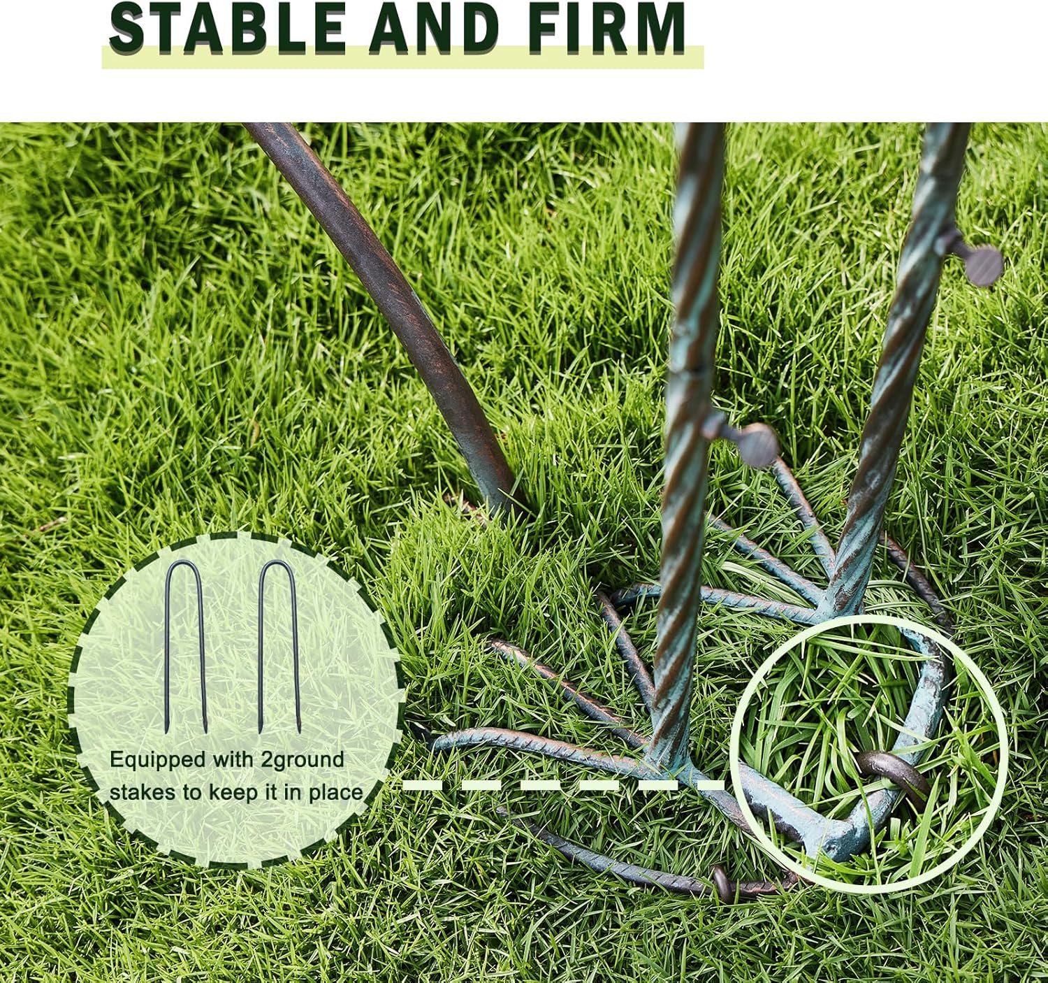• STABLE AND SOLID: Equipped with 2 U-shaped stakes keep the crane bird bath firmly on the grass, even during harsh weather conditions