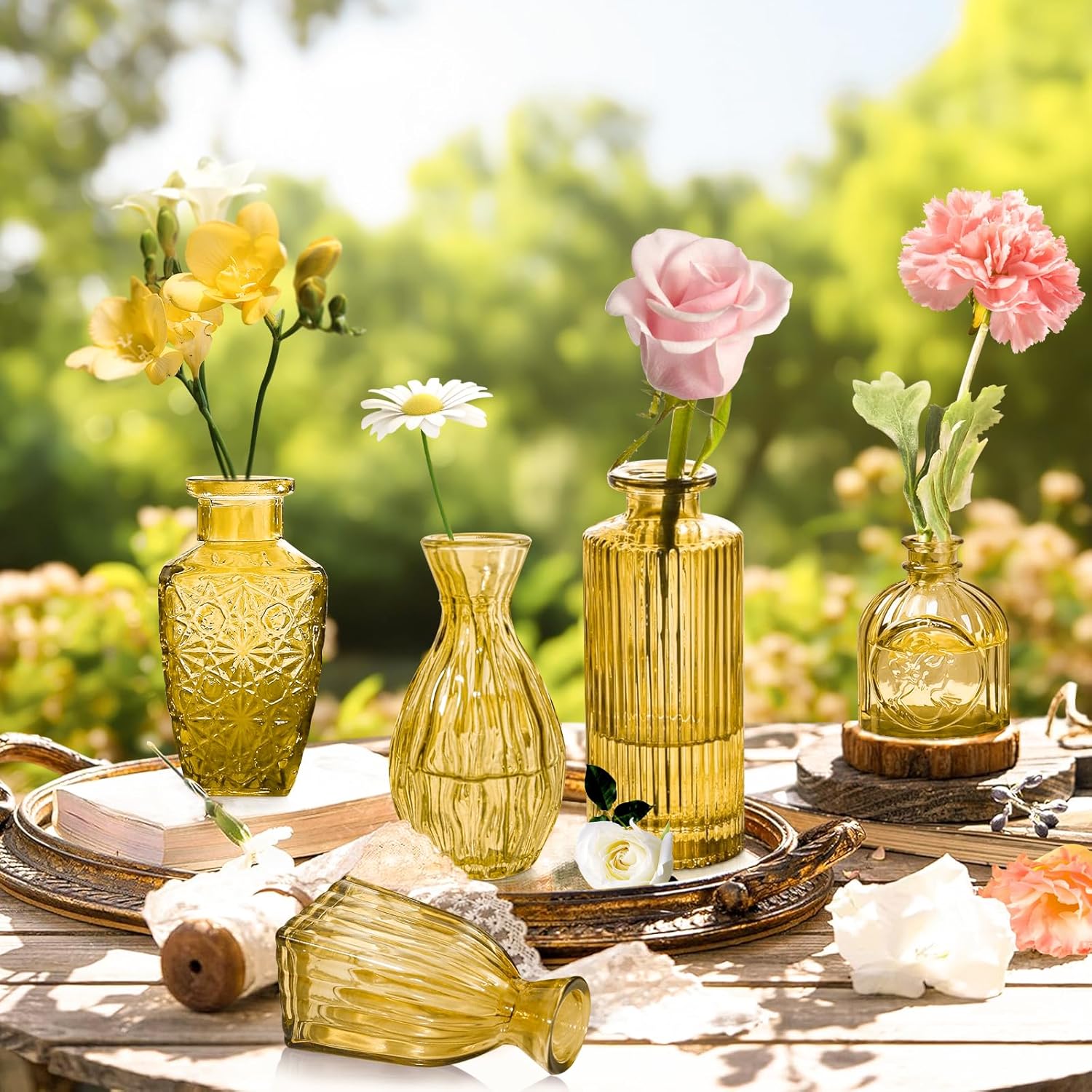 Amber Gold Glass Bud Vases Set of 24, Vintage Small Vases for Flowers, Clear Crystal Mini Style in Bulk, Small Flower Glass for Centerpieces Wedding Decorations Home Party Decor