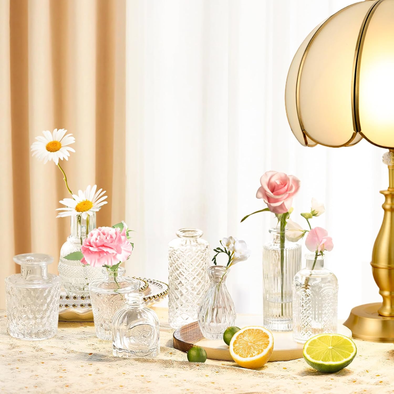 • Thick and Sturdy: Our glass vases bulk is made of thick and sturdy glass, strong and not easily broken. Each small glass vases floreros has a thickened base for stability, and the textured pattern on the surface of small vases for flowers adds a unique touch, injecting an element of sophistication to create a fun and captivating visual effect.