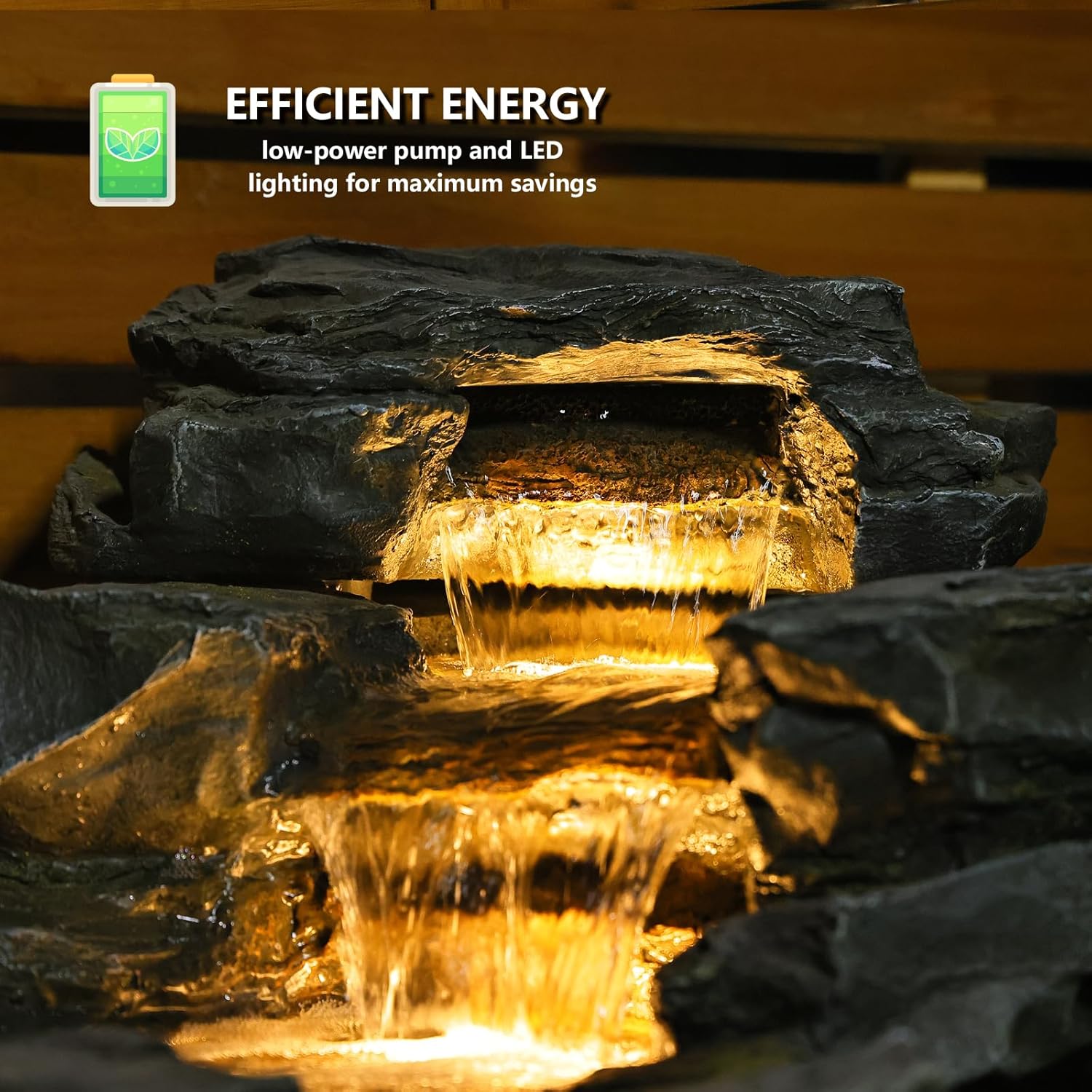 • GARDEN WATERFALL FOUNTAIN: This running water fountain has built-in golden lighting to create a warm atmosphere. The waterfall fountain will turn into a magnificent indoor decoration at night.