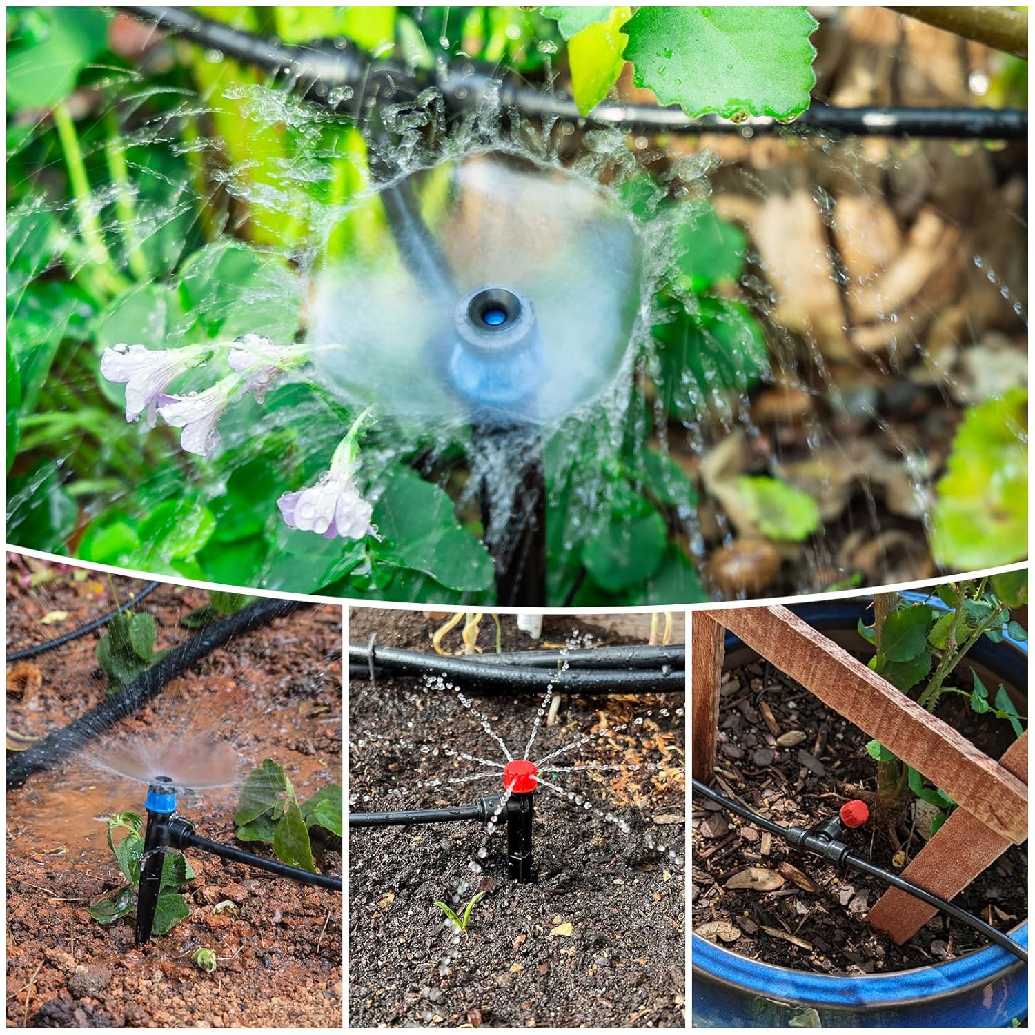 • Customizable Water Flow: Tailor your watering experience with ease. From a delicate mist to a generous 10-foot spray diameter, adjust the water flow to suit your needs. Whether you crave larger coverage, smaller streams, or a complete shutdown, our drip irrigation spray emitters deliver flexibility on demand.