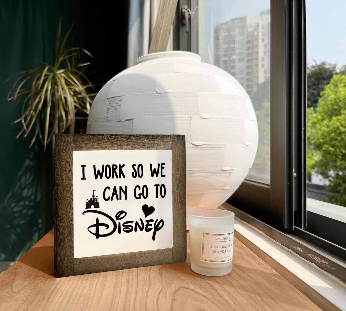 Inspirational Wood Signs, Box Wood Plaques Desk Décor, Decorative Plaques and Signs, Rustic Office Decor Art, Motivational Office Desk Decoration, Farmhouse Home Decor, I Work So We Can Go to E
