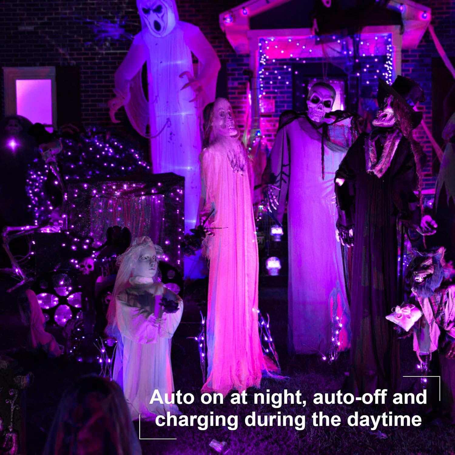 Solar Powered String Lights Outdoor, 2 Pack Total 200 LED 66FT Solar Powered Halloween Decorative Fairy Lights 8 Modes Black Wire for Halloween, Garden, Patio, Party, Yard, Christmas(Purple)