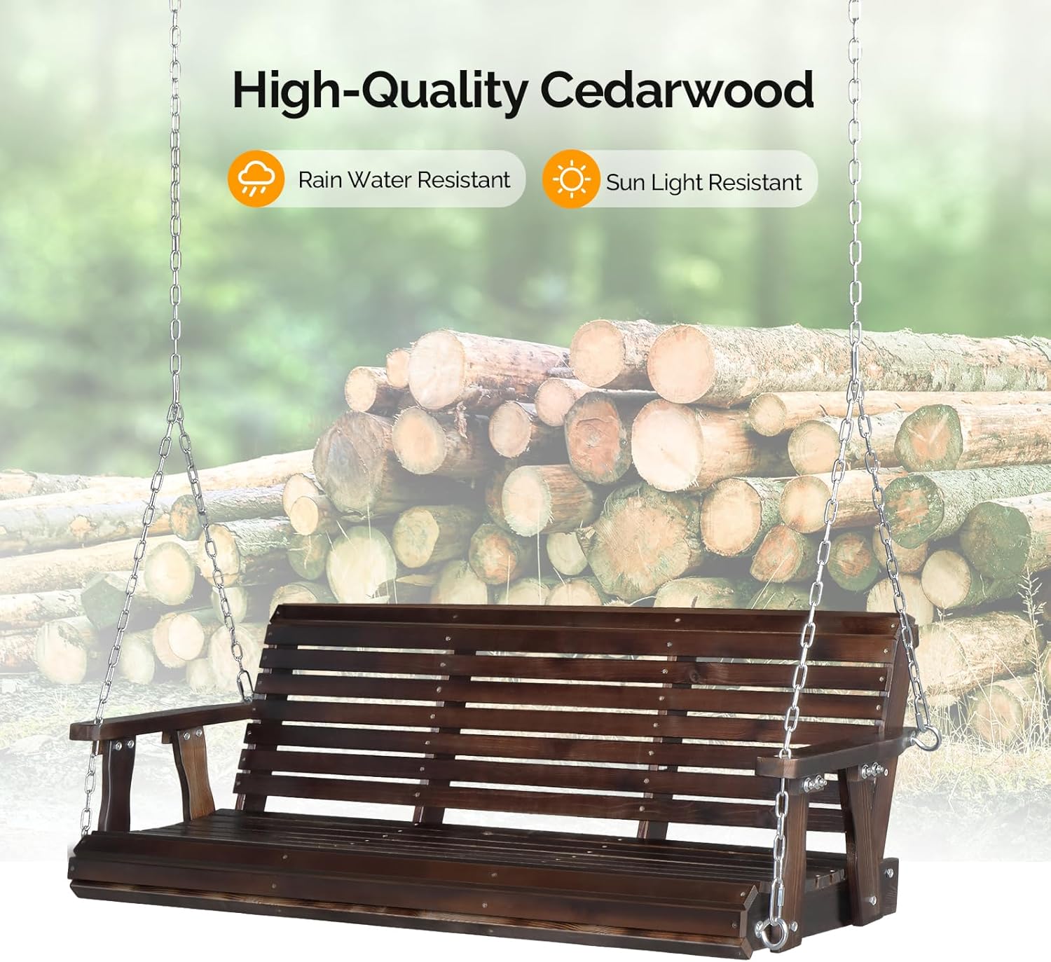 • Well-Coated Surface - Compared with other swings with raw wood material, our porch swing chair outdoor are more durable with its well-finished surface