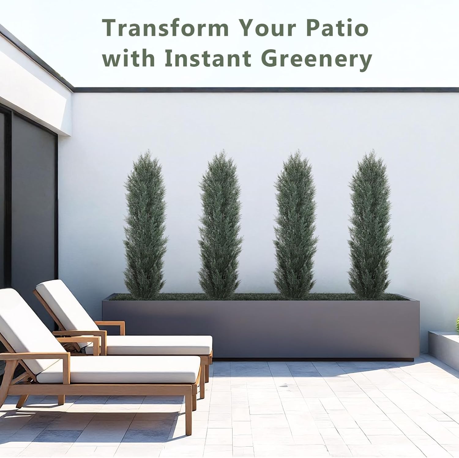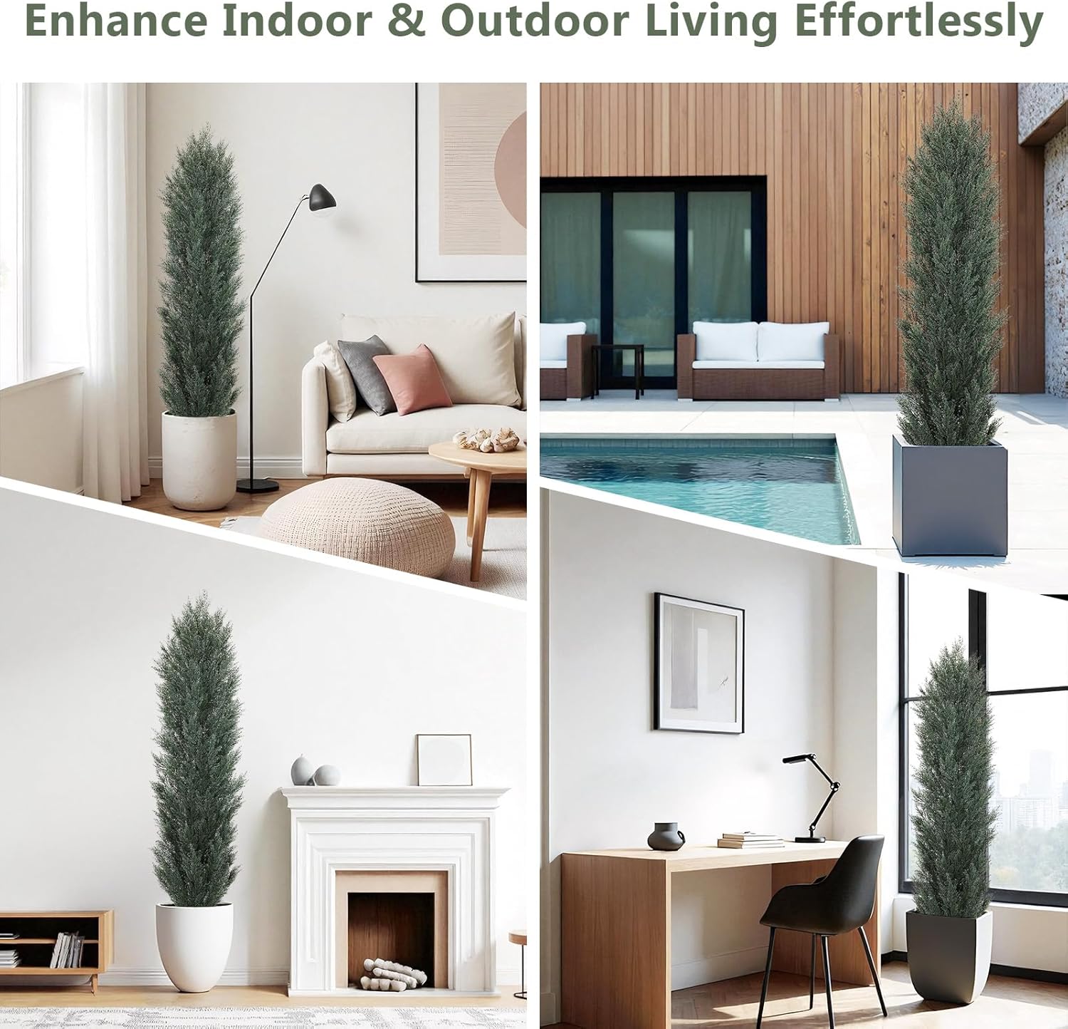 • 【Tall & Realistic Look – 6ft Natural Greenery】Standing 6 feet tall from the bottom of the pot to the tip of the tallest leaf, this artificial cedar tree features dense, lifelike greenery that mimics a real evergreen shape. Please note: The tree is shipped compressed. To reach its full height and natural look, gently fluff the branches upward by hand after assembly