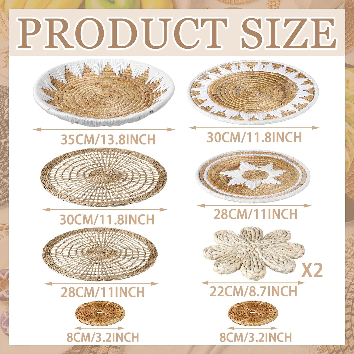 • Abundant to Choose: you will receive 8 pieces of woven wall baskets in different styles, the sizes vary from 7.8 inch to 12.6 inch, suitable for wall decorating use, the quantity and sizes are enough for your daily needs and replacement demands, you can mix and match them as you need, making your furnishing styles more attractive