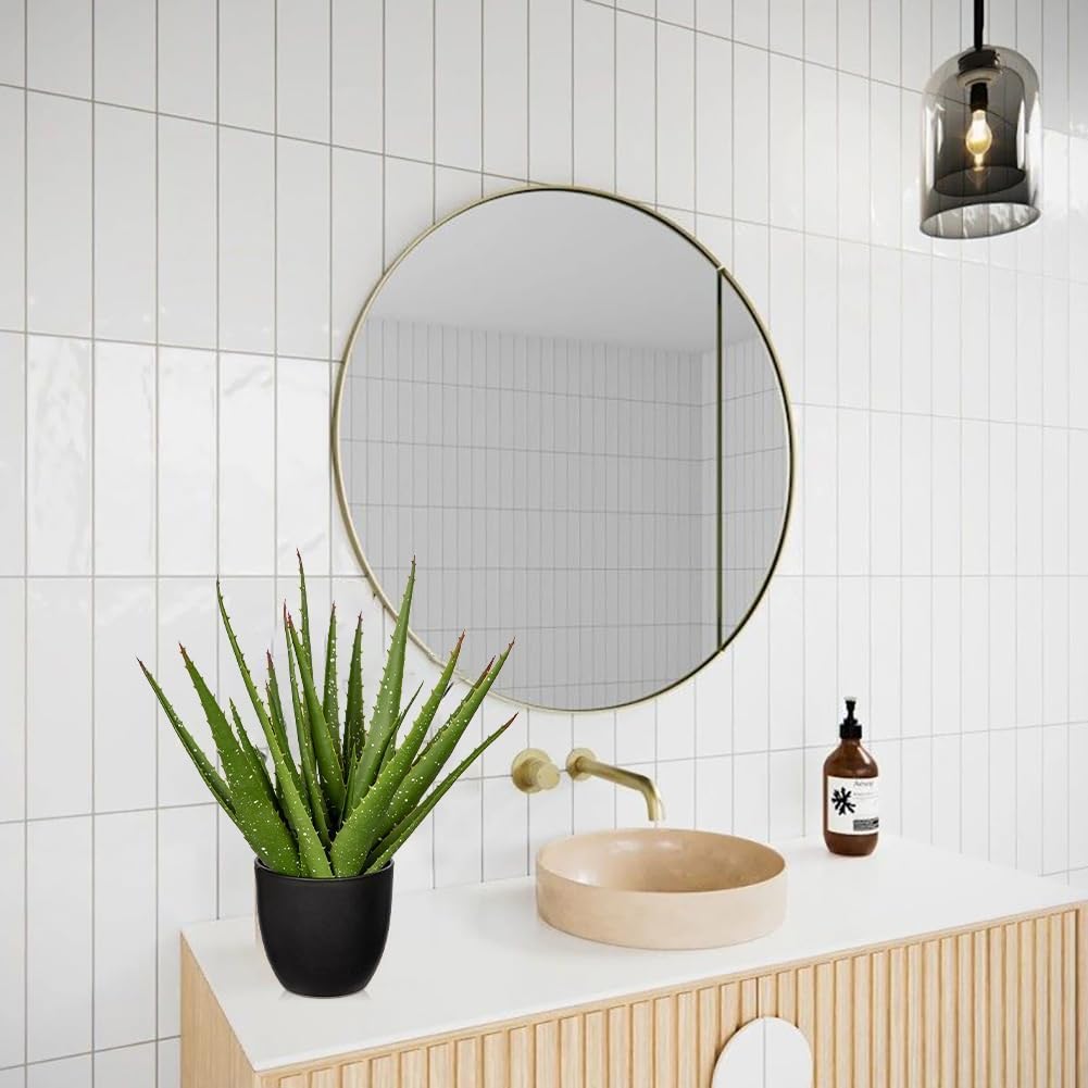 Fake Succulent Aloe Vera Plants 13.4 Inch Large Artificial Succulents with Black Pot Faux Aloe Potted Plant for Desk Modern Home Office Bedroom Living Room Table Shelf Decor