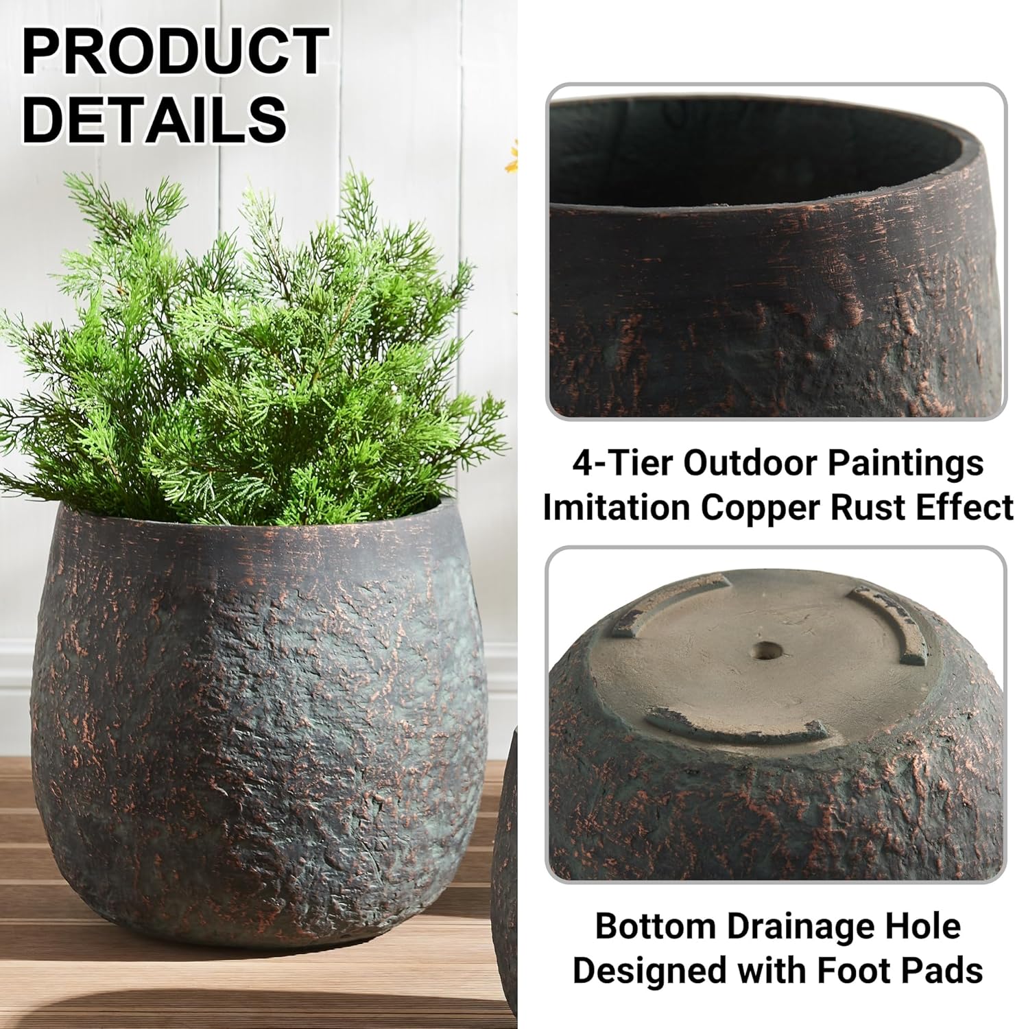 17.3"+12.9"+9.0" Dia Weathered Concrete Flower Pots, Modern Round Style Concrete Planter for Home, Garden, Patio, Courtyard, Bronze Rust Color, Set of 3