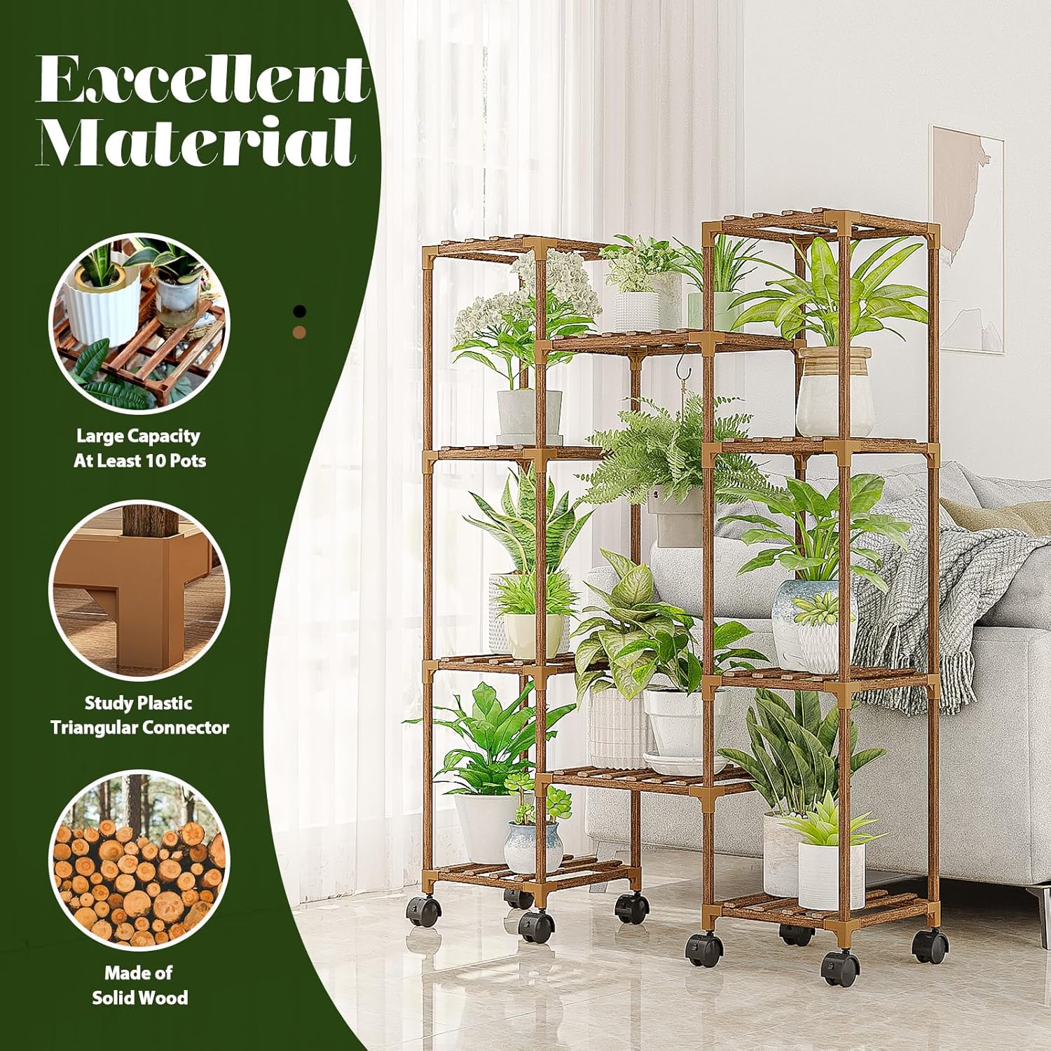 Plant Stand with Wheels Outdoor Indoor Hanging Plant Shelf for Multiple Plants Tall Large Holder for Living Room Patio Balcony Garden Corner Mobile