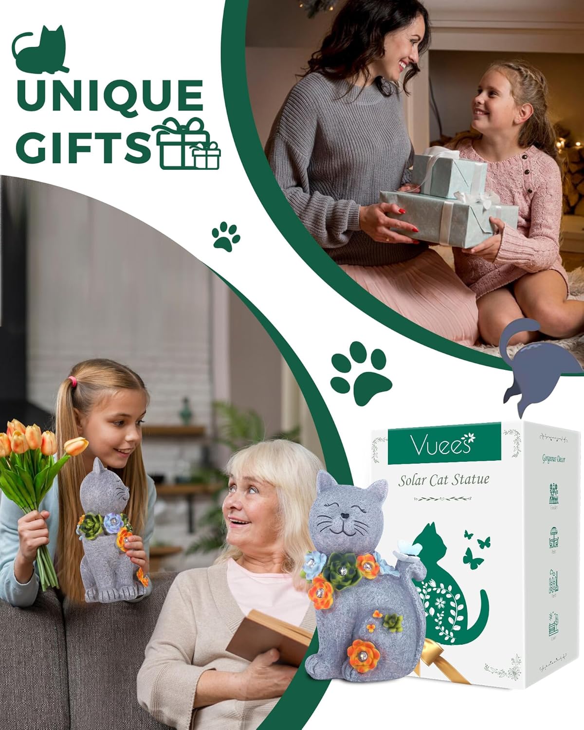 • UNIQUE GIFTS IDEA: Surprise the gardening enthusiasts in your life with a unique and enchanting gift. Vuees Solar Cat Statue makes for a heartwarming housewarming present, perfect for moms and grandmas who cherish their outdoor spaces.