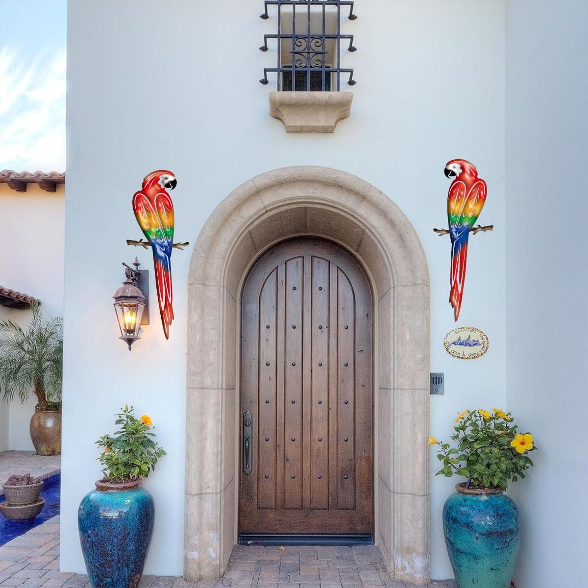 • [2 Pcs red parrot Wall Art]:Durable iron 3D parrot set ,handcrafted rustic tones,A wonderful addition to your home decor