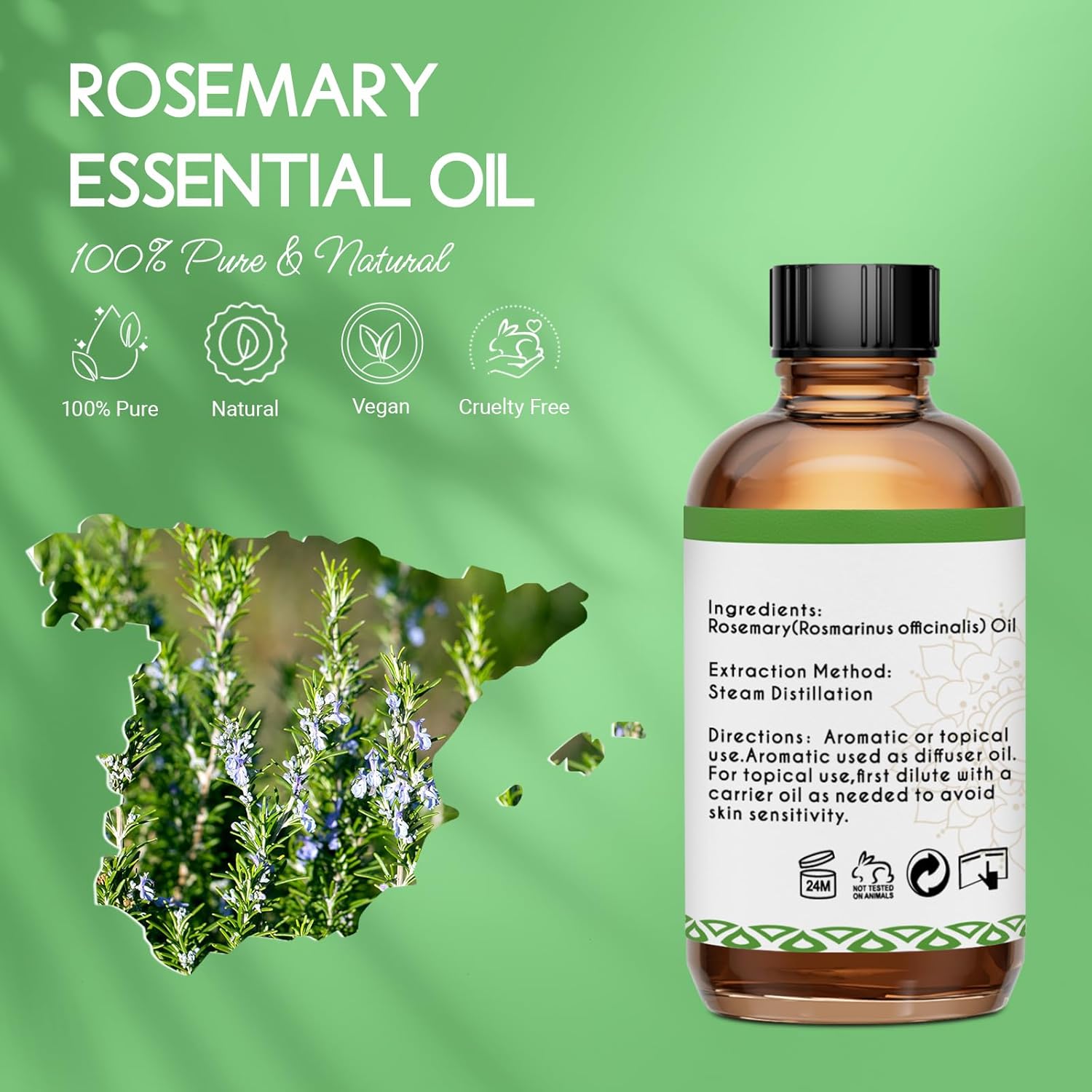 • Pure Rosemary Oil: Our Rosemary essential oil is steam distilled from high-quality rosemary leaves, it is free from any synthetic additives or other impurities, ensuring that you get the best possible product.