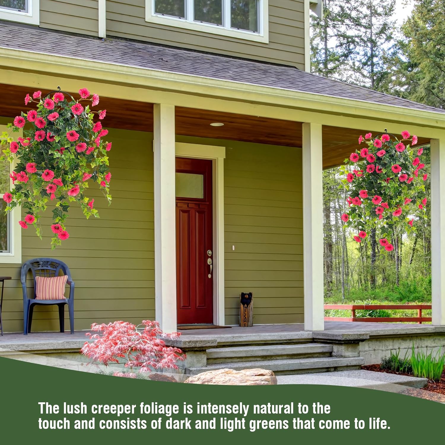 • CONVENIENT PACKAGING: Artificial Petunia Hanging Flower comes with 2 PCS and one black iron planter. Packed in a cardboard box to ensure safe delivery for your decorative needs.