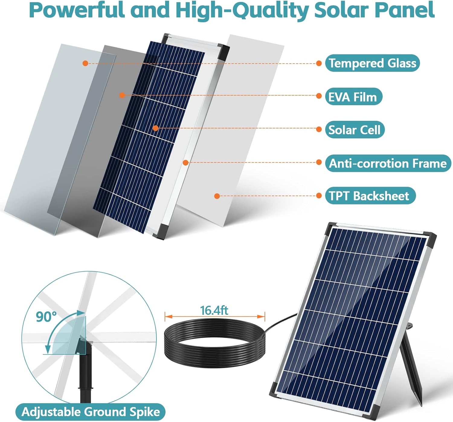 • [✔ High Efficiency and Long Life] Our solar fountain pump are made with 12W high-quality solar panel which provides more efficient and longer service life than traditional solar panels, allows the solar pump works continuously and stable. Comes with 16.4ft long cord allowing to find the best place to place solar panel.