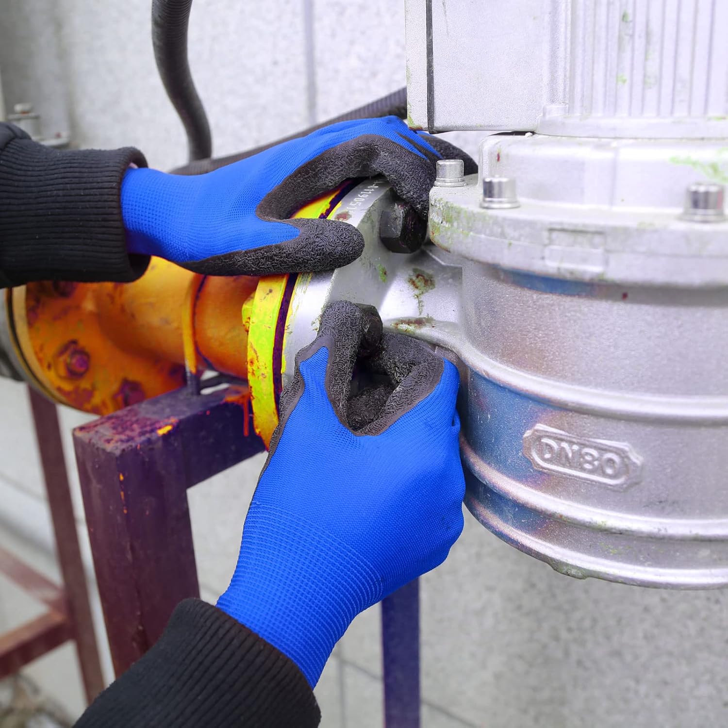Evridwear Crinkle Latex Rubber Hand Coated Safety Work Gloves for Men Women General Multi Use Construction Warehouse Gardening Assembly Landscaping (L-Size) Blue 120 Pairs Pack