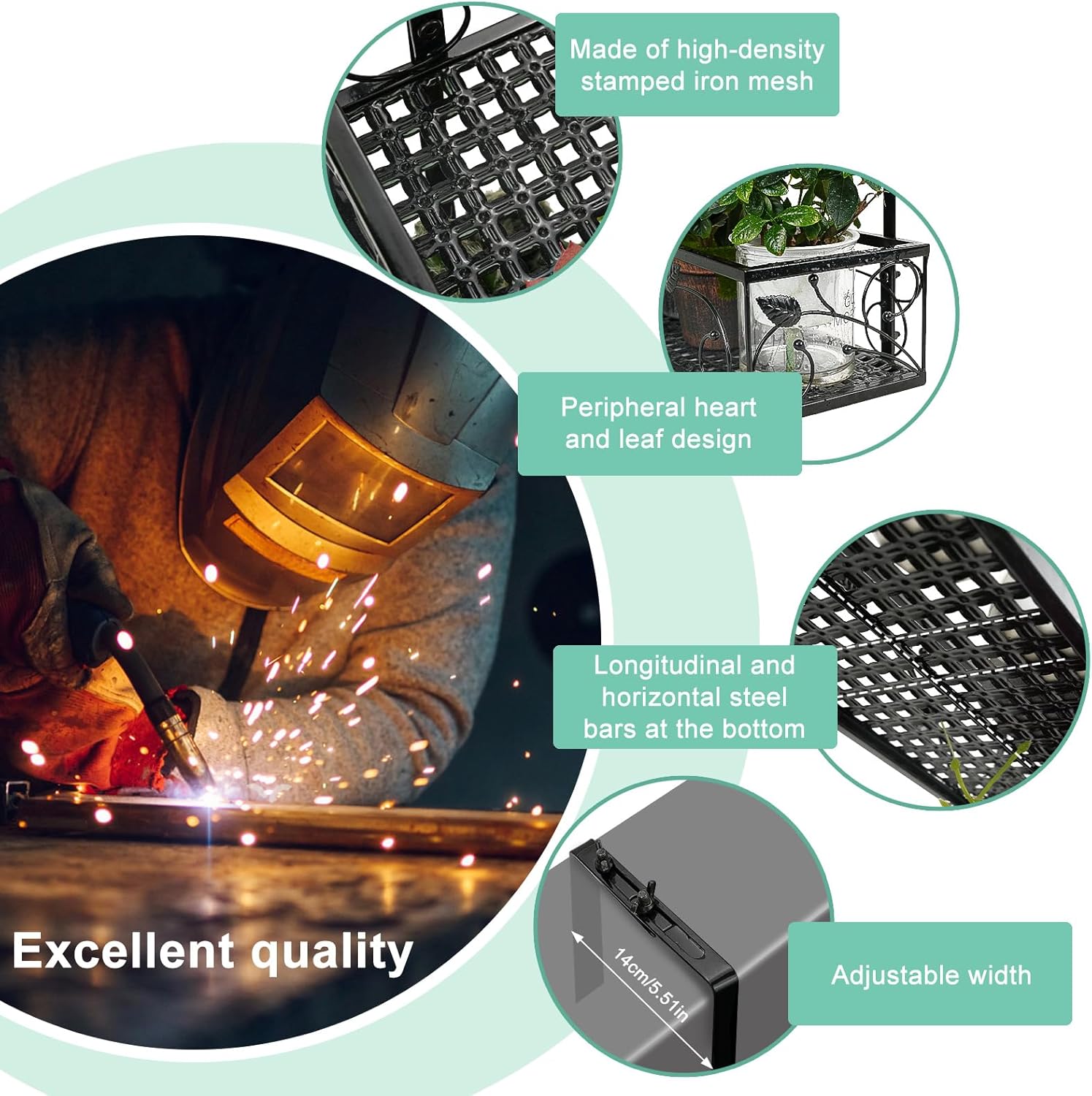 • High quality Patio Railing Shelf : Basket planter with bracket is made of premium metal, rustproof wrought iron craft, durable and reliable, with good load-bearing capacity and certain anti-rust ability, it is an excellent choice for growing flowers on your balcony fence. simple but elegant look, ideal for hanging railing planter stand.