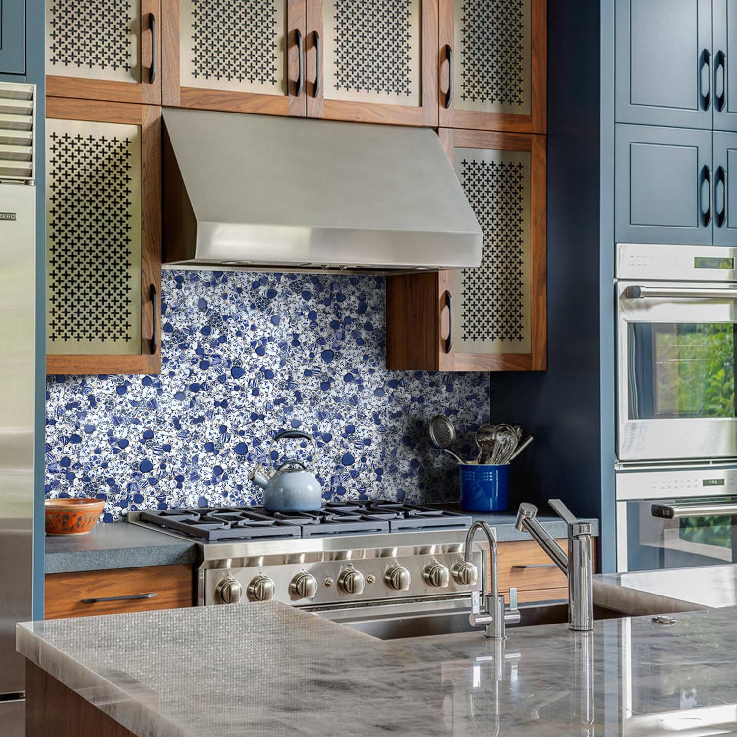 • Mesh back Tile: The blue & white pebble mosaics are mesh mounted. It is easy for cutting the mesh for any DIY project.