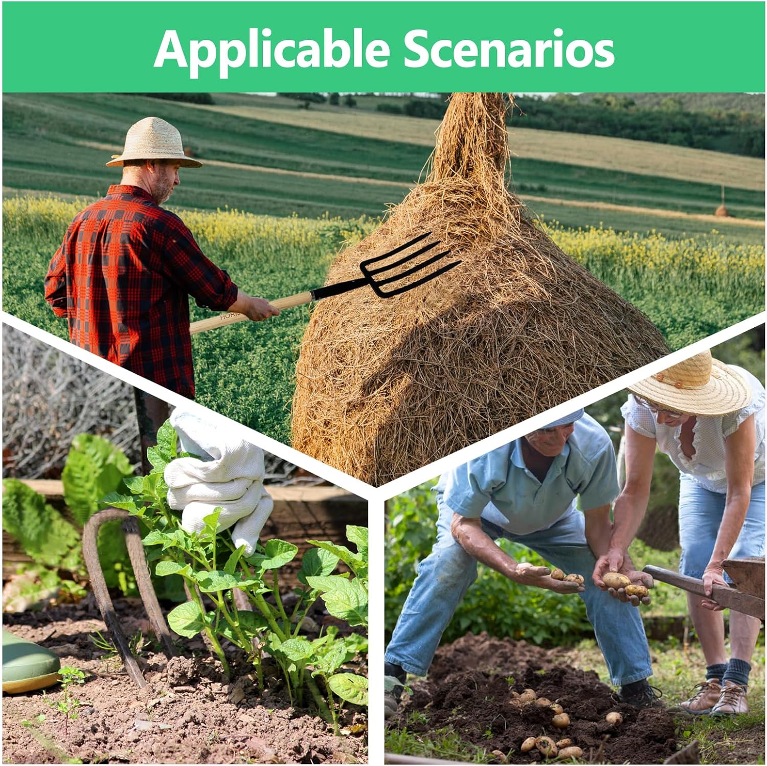 • Multi-Use:The sharp V-shaped tines of the digging fork can quickly penetrate hard soil,Pitchforks For Gardening Suitable For Loosening The Soil, Moving Mulch, Leaves, Straw, Hay Or Garden Debris, Turning Over Compost, Soil And Digging Potatoes Garlic.