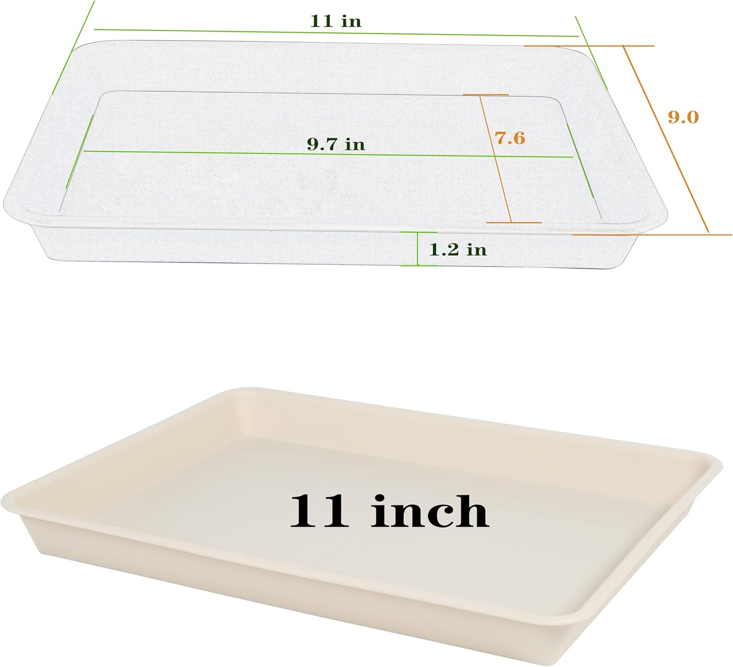 • PLANT TRAY VALUE - Plant drainage tray, 4 packs plant tray saucers rectangular, Plant Saucers for Indoors, inner diameter is 9.7 X 7.6 inch width and outer diameter is 11 x 9 inch width, 1.2'' Height, suitable for flower pot with bottom diameter less than 10 11 inches. Plant drainage trays for planter.